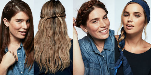 For a dressy look that's less structured than your average ponytail (on purpose), very loosely wrap up your hair into a messy ponytail, pull the hair band down halfway, separate the strands into two sections, and flip the end of your hair into the space between them. And for some hair pizazz, disguise the tie with a silky ribbon.