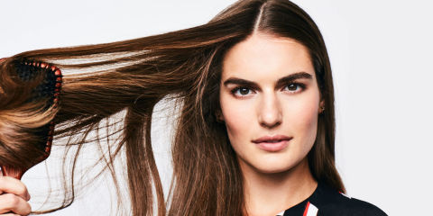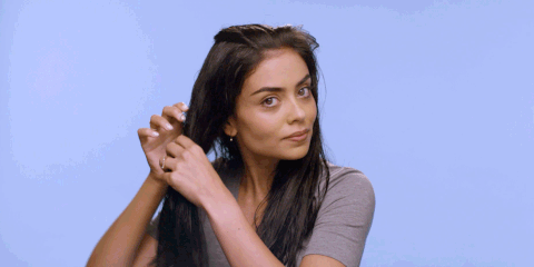 When you want your hair to pancake at the sides of your head and flow rather than hanging in a tapered ponytail, pull the hair down below the hair tie as much as you can so that all the lengths of your hair fan out. It helps to have super long, thick hair, too, but extensions can help you create the same look.