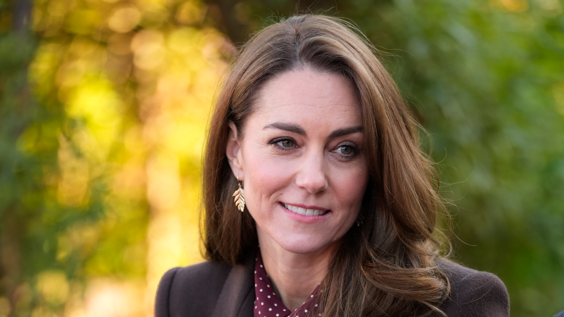The rest of the princess's outfit was perfectly on-trend for autumn 2024, with the royal coordinating with Prince William in shades of burgundy. She repeated a long brown Alexander McQueen coat with a maroon polka-dot dress by Whistles that she first wore in 2018, choosing to update the style by wearing its tie belt around her neck to form a pussybow detail.