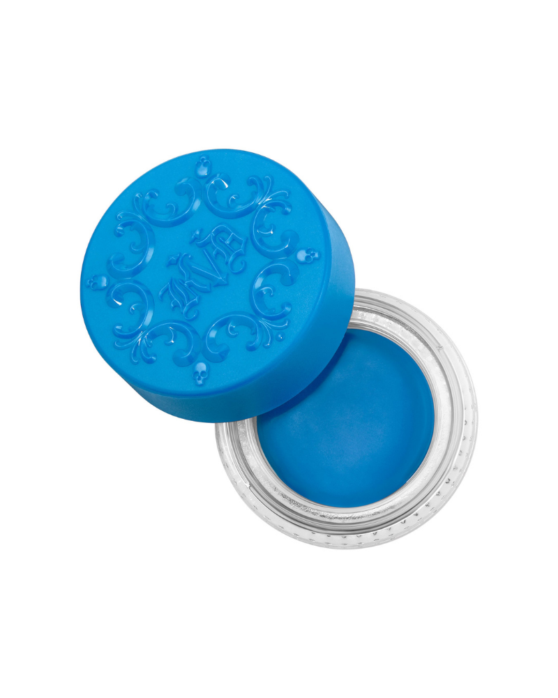 If your end goal is a mermaid vibe, go all in with a sky-blue cream over your lid alongside a pointed cat eye shaped like the sharp waves of a cartoon ocean. Outline the shape using a detailed brush and a bit of blue pigment before filling it in with color.