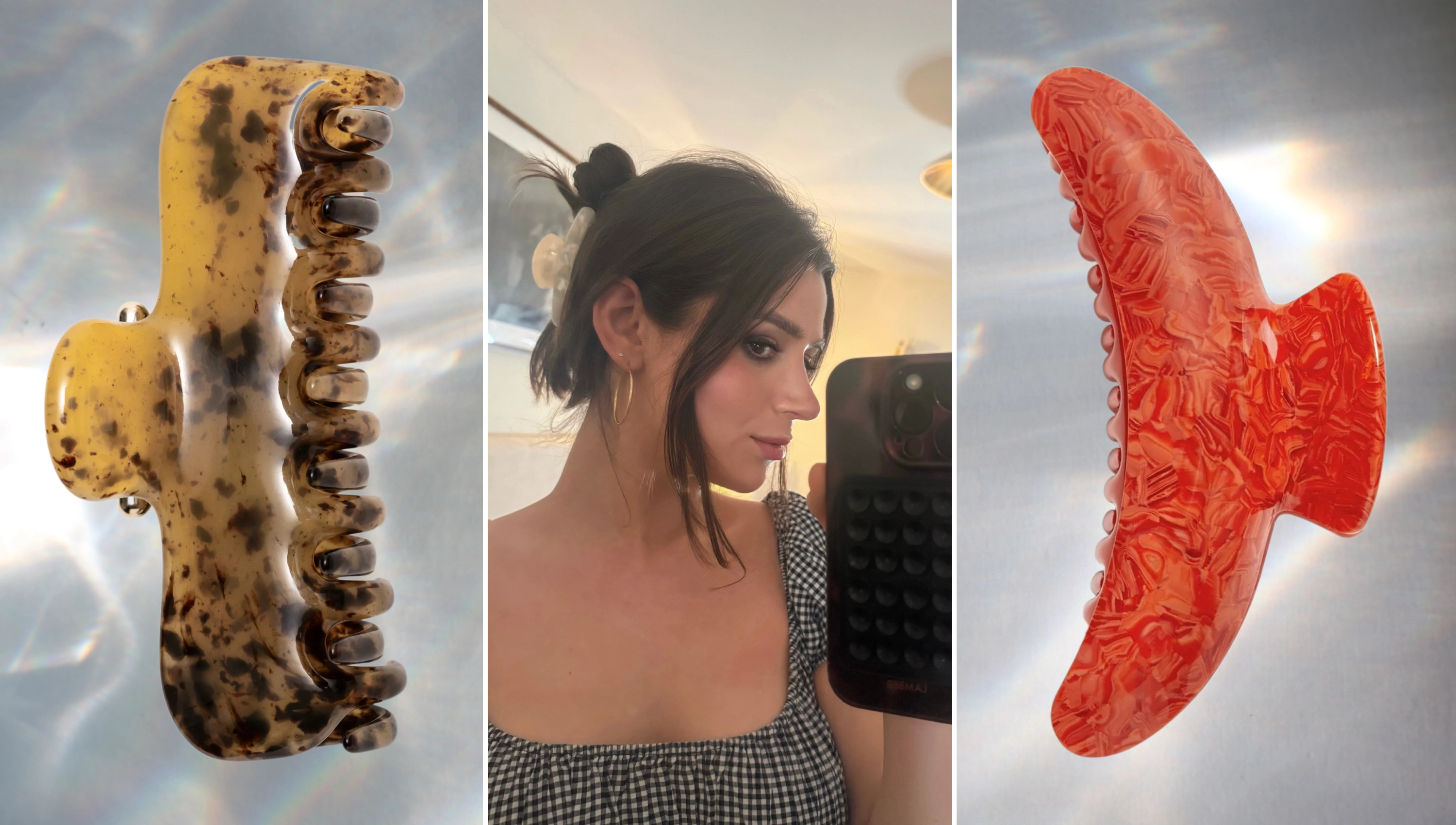 Like my emotional support water bottle, I am also deeply attached to claw clips. Somewhere between stealing some from my mom's stash in middle school and my daily “I need my hair off my neck immediately” spirals, the accessory never really left—it's just evolved. In the process, claw clips have inspired an entire category of hair accessories to emerge, or, reemerge rather: think French pins and combs, funky elastics, sculptural barrettes, and even tiny embellished magnets that look like hair jewelry. All of them tap into that same appeal—easy, quick styling that will zhuzh up any hairstyle.