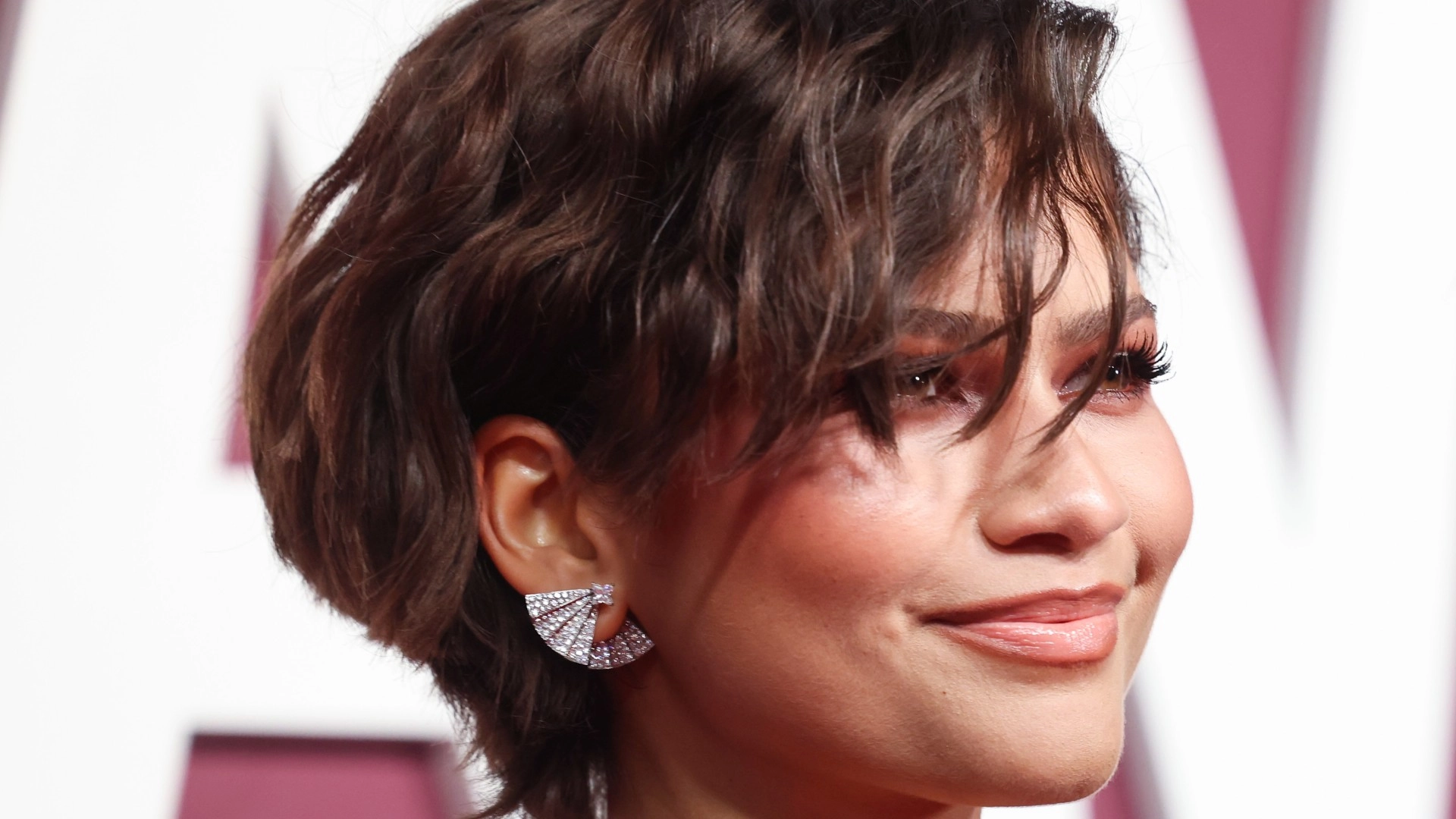 Zendaya wears a tousled bixie and warm eye makeup to the Rome premiere of "The Drama."
