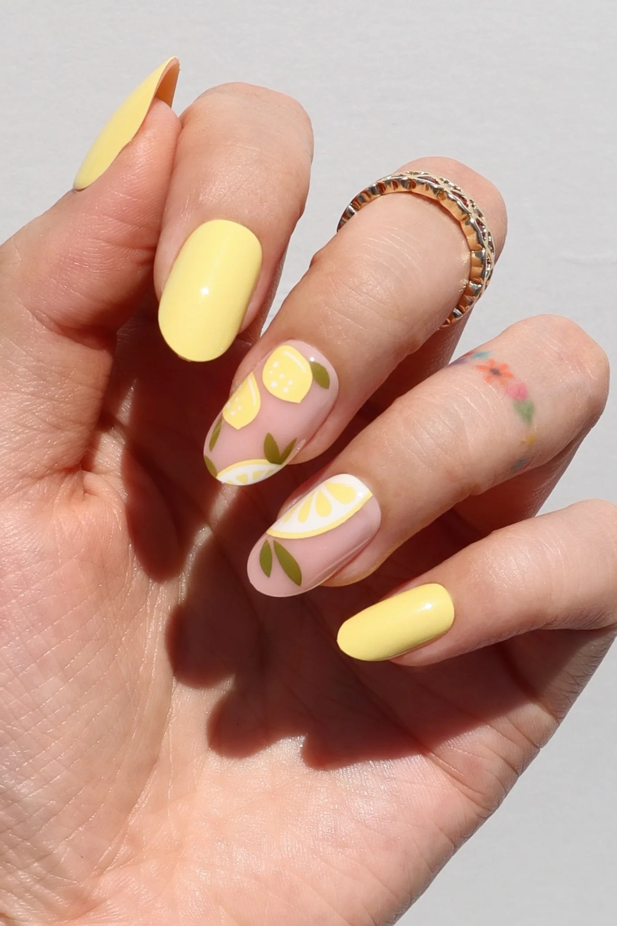 As for the beachy, fruity iteration, Nguyen suggests adding a lemon or orange on top of the nail. Again, if nail art isn't your greatest strength, grab a few nail stickers. It instantly elevates the manicure, making it look significantly more expensive and detailed.