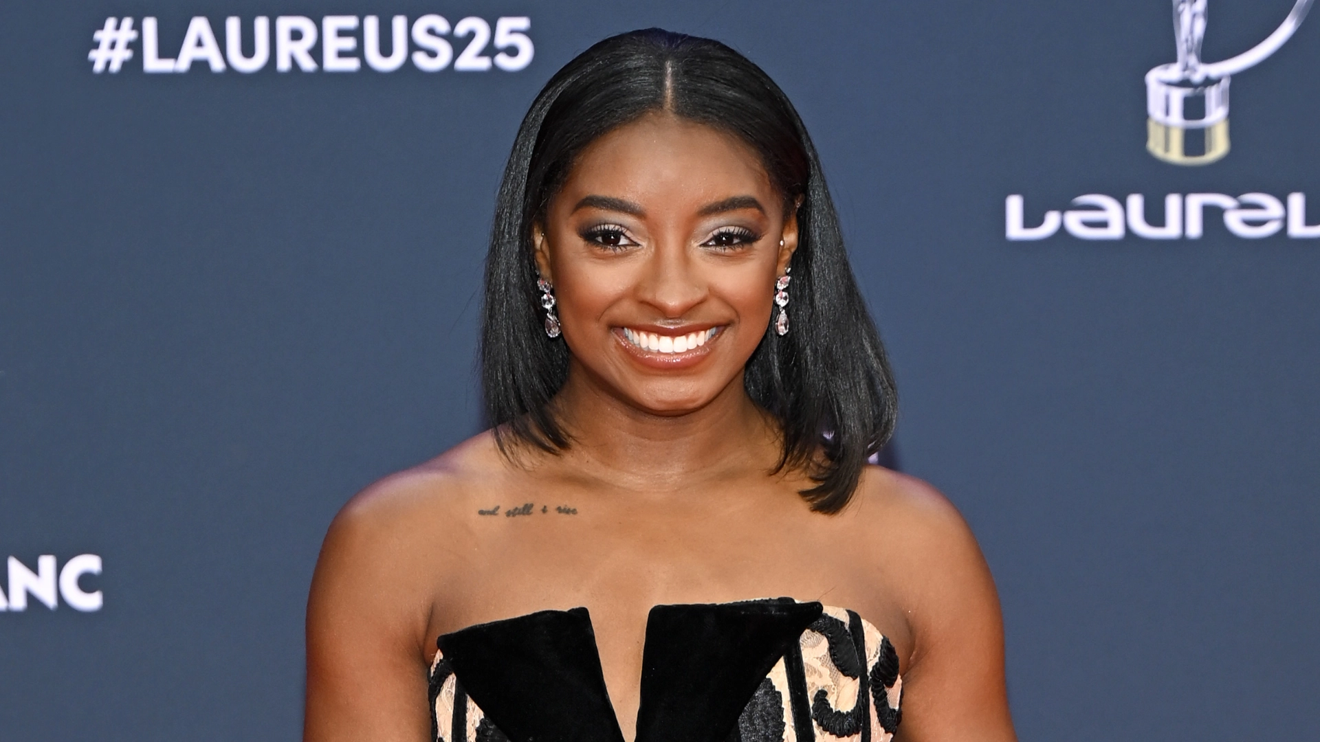 Biles opted for a classic look: a bun hairstyle that is equal parts functional, yet chic. To achieve the bun, her hair was first parted down the middle and gathered into a ponytail. The ends were then tucked into a bun, and some type of gel or flyaway control product was applied to the front of her hair to keep the style sleek all day.