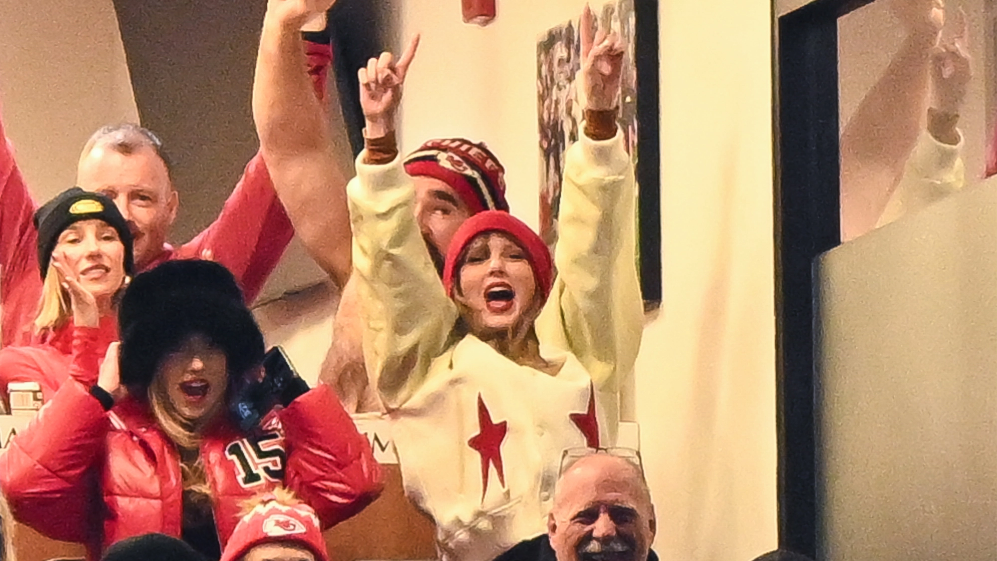 Swift, of course, made sure to be there to try the food support her boyfriend Travis Kelce. This time, the star cheered on the Chiefs tight end alongside his brother Jason Kelce, sister-in-law Kylie Kelce, mom Donna Kelce, and dad Ed Kelce.
