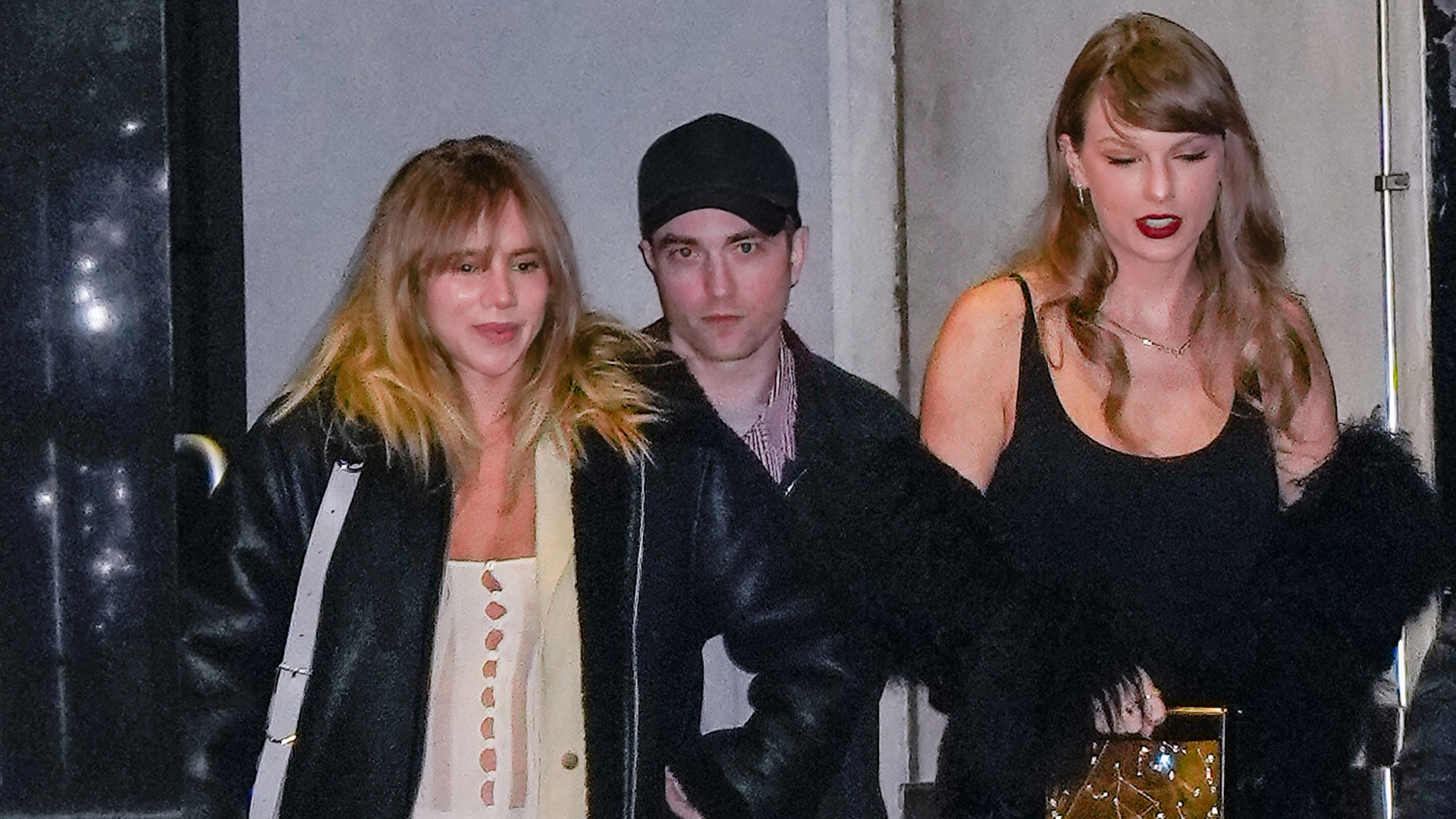 Waterhouse, Pattison, and Swift are also spotted leaving together. Swift is wearing a sleek, all-black look, which contrasts Waterhouse's white outfit and oversized jacket from COS.