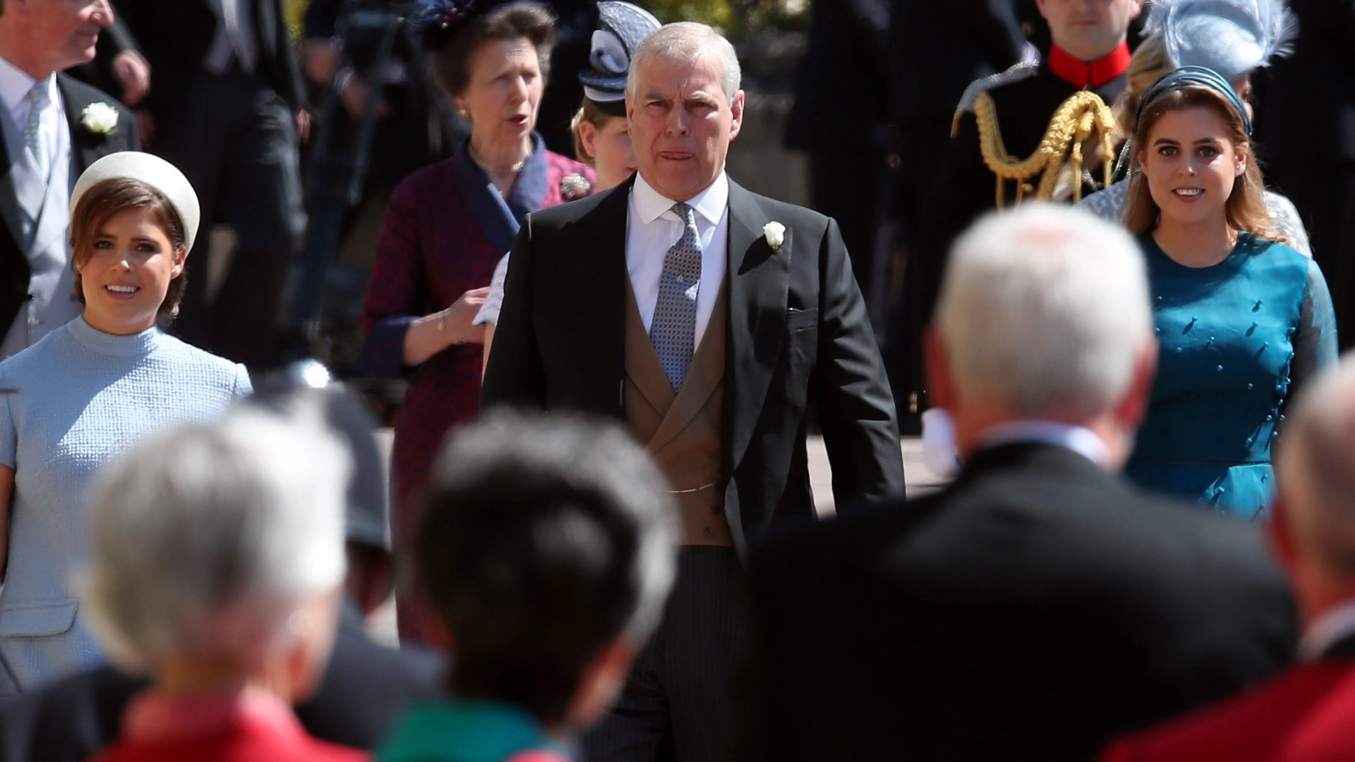 Without an invitation of his own, the disgraced royal can only get a glimpse at his family's goings on through his daughters.