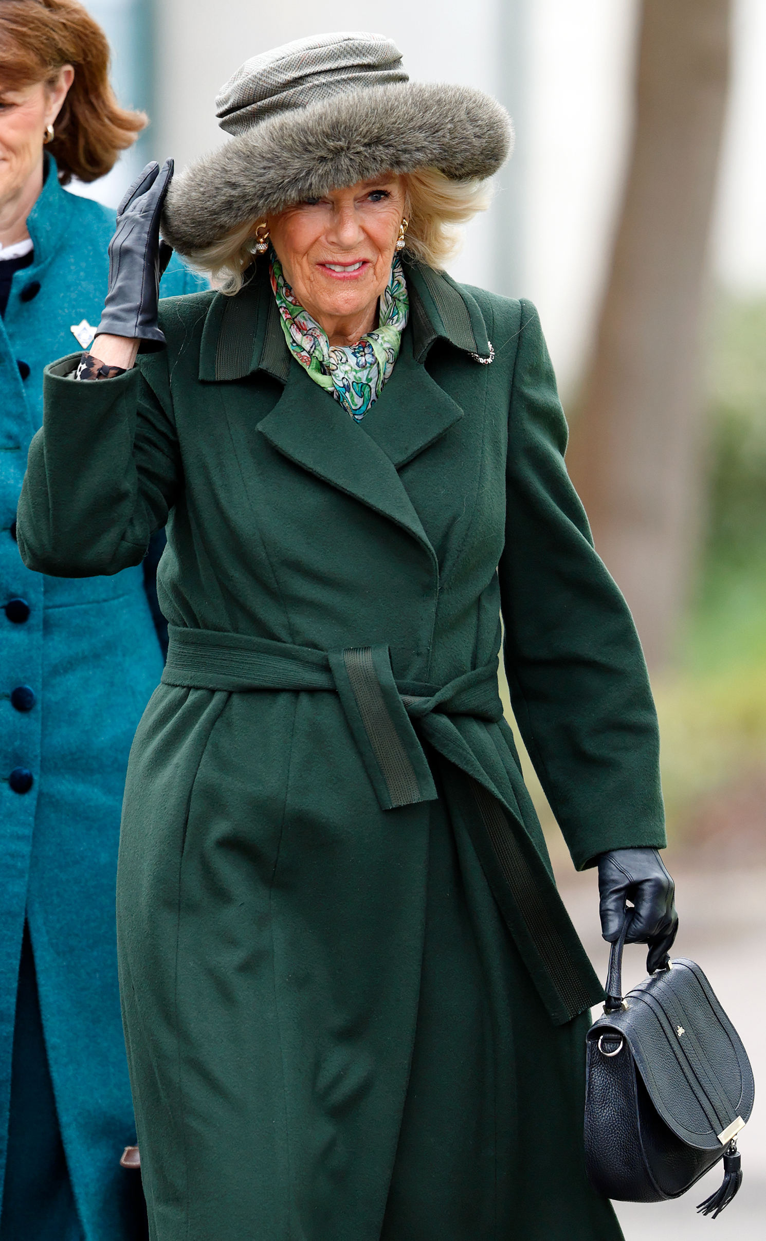 Like Meghan Markle, Queen Camilla is a fan of DeMellier and owns the same "Mini Venice" bag as the duchess. This is at the "Style Wednesday" of the 2024 Cheltenham Festival (fitting!); the design is actually a crossbody that Camilla is styling as a top handle bag.