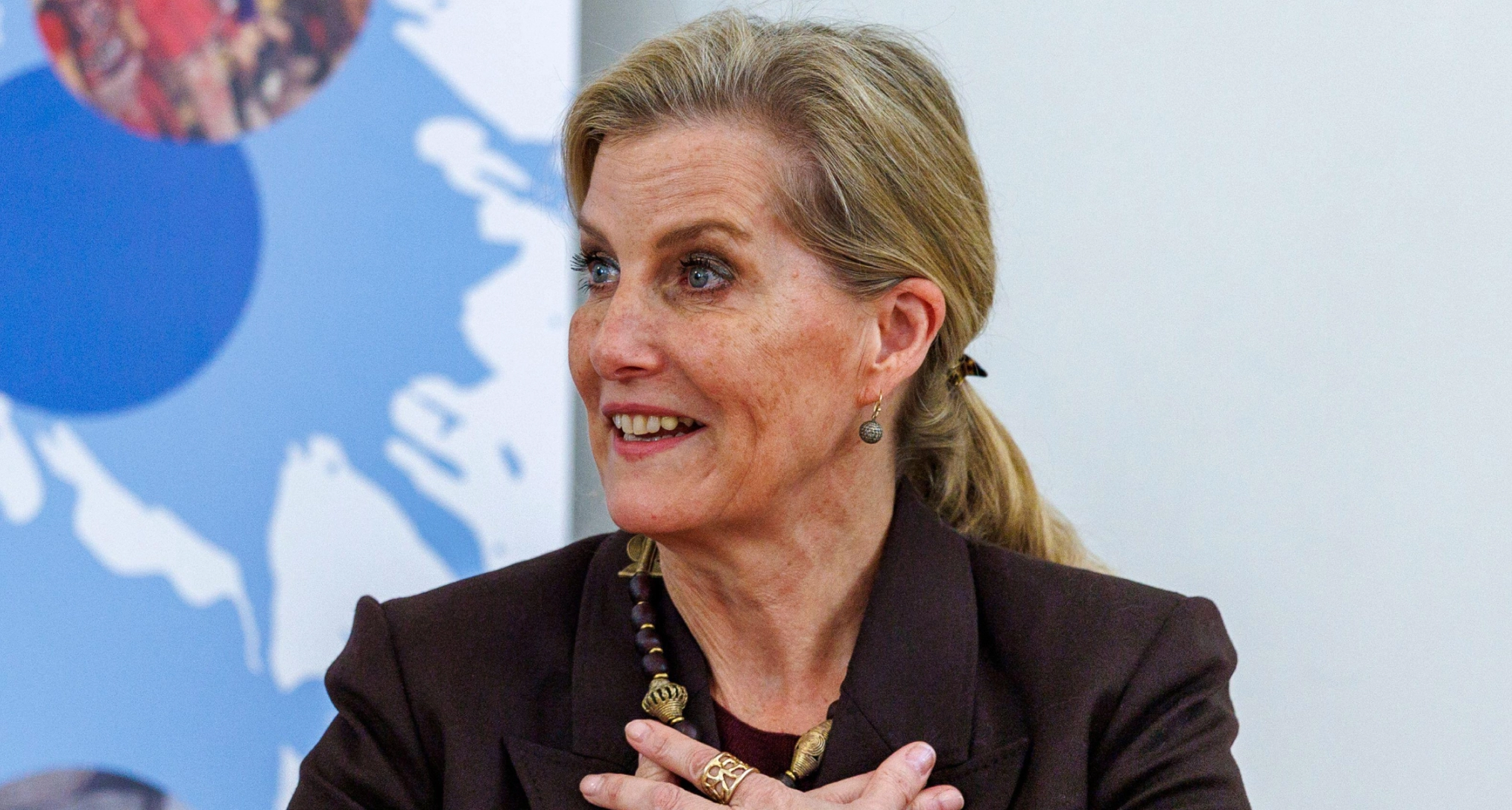 Duchess Sophie wears beaded earrings and a matching necklace from Kazuri Beads.