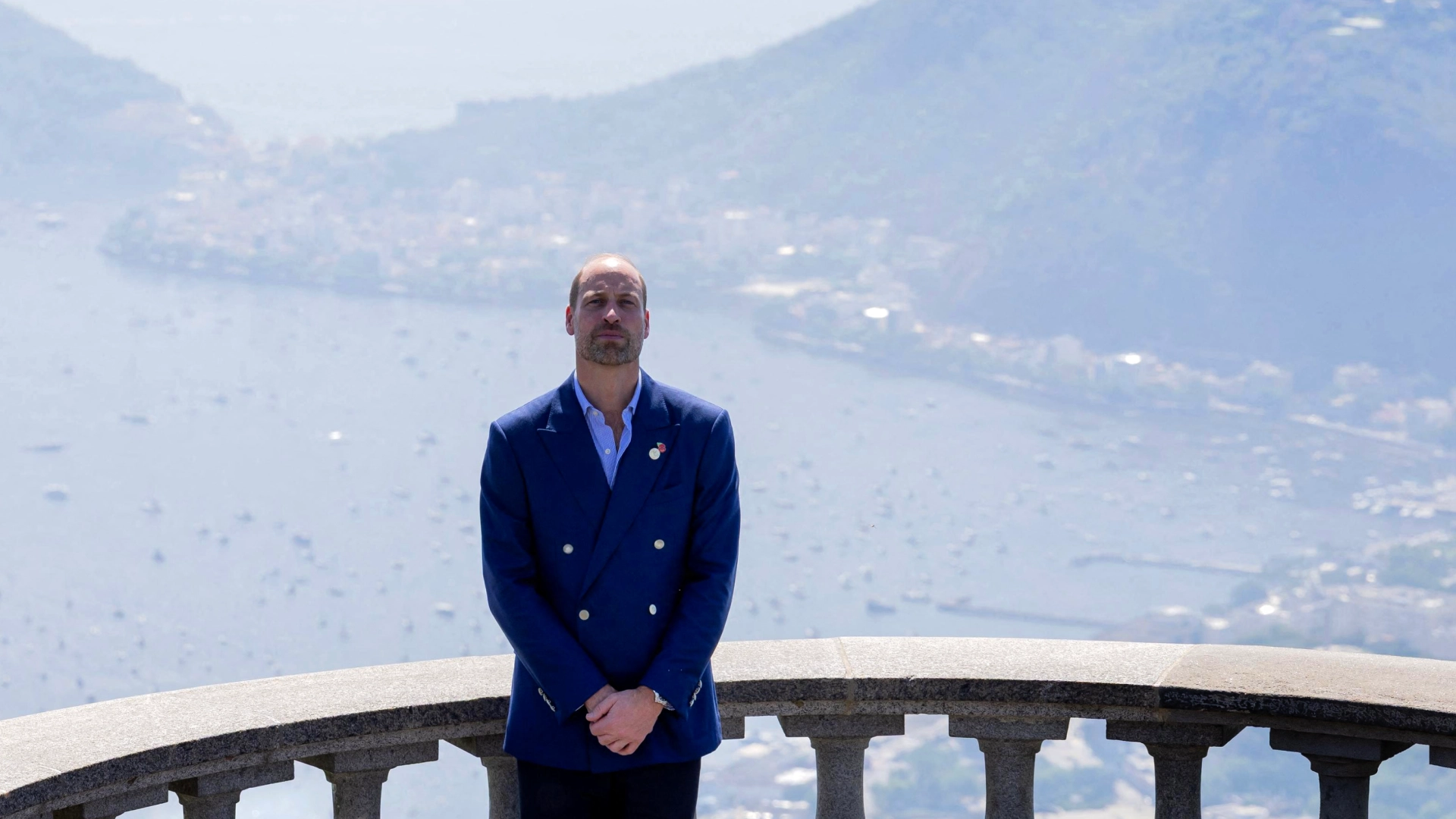 Prince William is seen greeting Archbishop Orani Tempesta at the Christ Redeemer Sanctuary in Rio de Janeiro, Brazil on November 5.