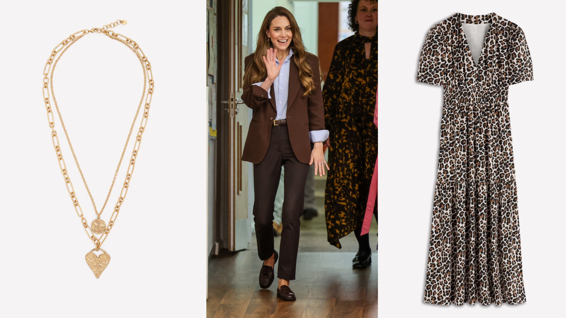 Kate has embraced chunky gold necklaces, including a bold heart style, at recent events. For under $100, this layered heart necklace will add interest to even your most basic shirt.