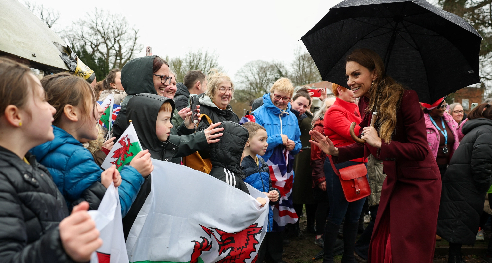 Prince William and Princess Kate were all smiles despite the terrible weather as they celebrated St. David's Day, the national holiday of Wales, with a visit to the country on Thursday, February 26. The Prince and Princess of Wales shared plenty of sweet moments with fans who waited in the pouring rain to meet them, and Kate managed to turn one potentially "awkward situation" into a special connection.