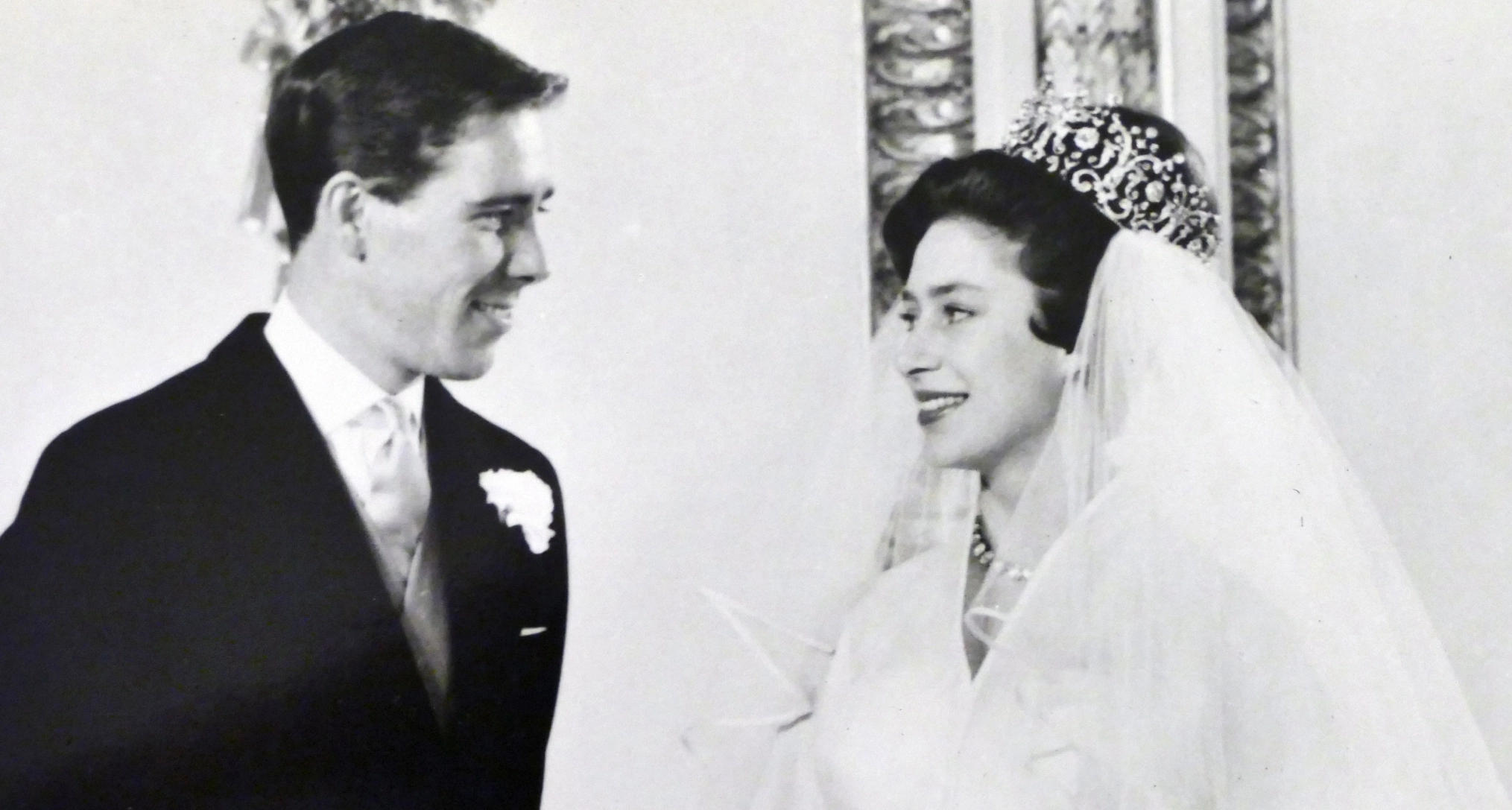 The princess and her then-husband, Antony Armstrong-Jones, are seen on their wedding day.