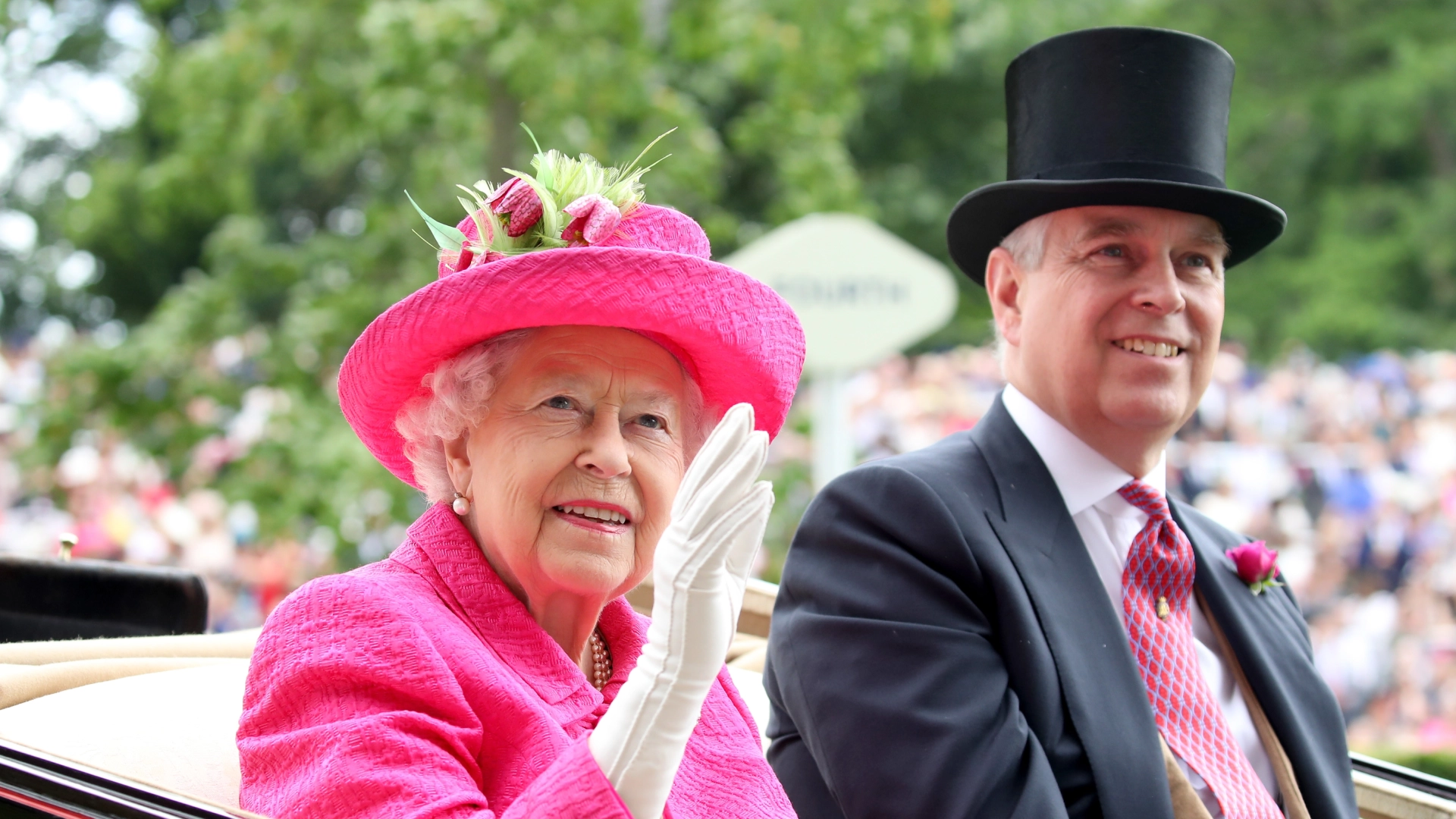 Queen Elizabeth is seen with Prince Andrew at Royal Ascot 2014.