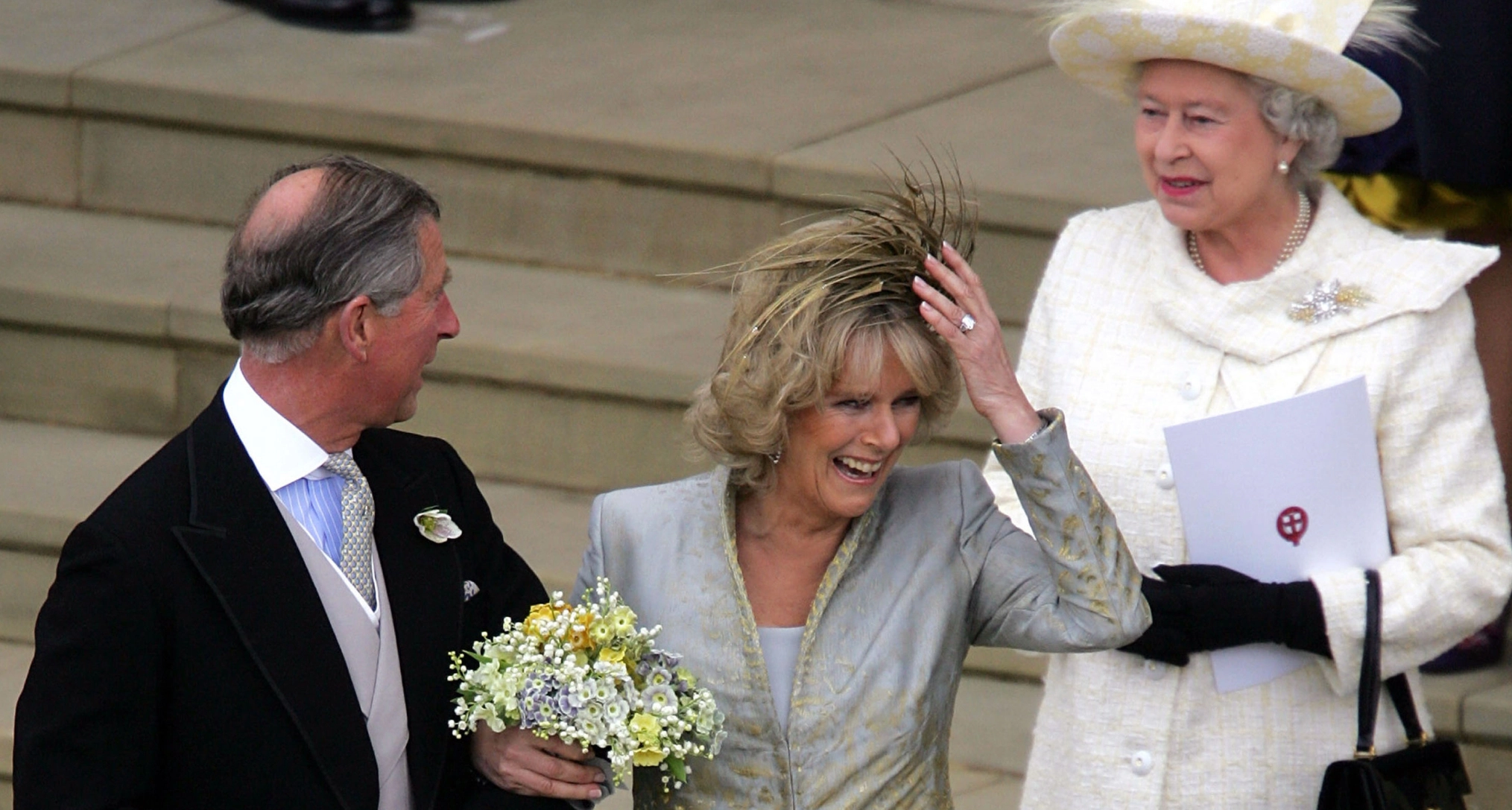 Although the headpiece might not have been the most practical choice, it certainly made a striking addition to the future Queen’s wedding day outfit—and fortunately, it didn’t blow away like Camilla hoped.