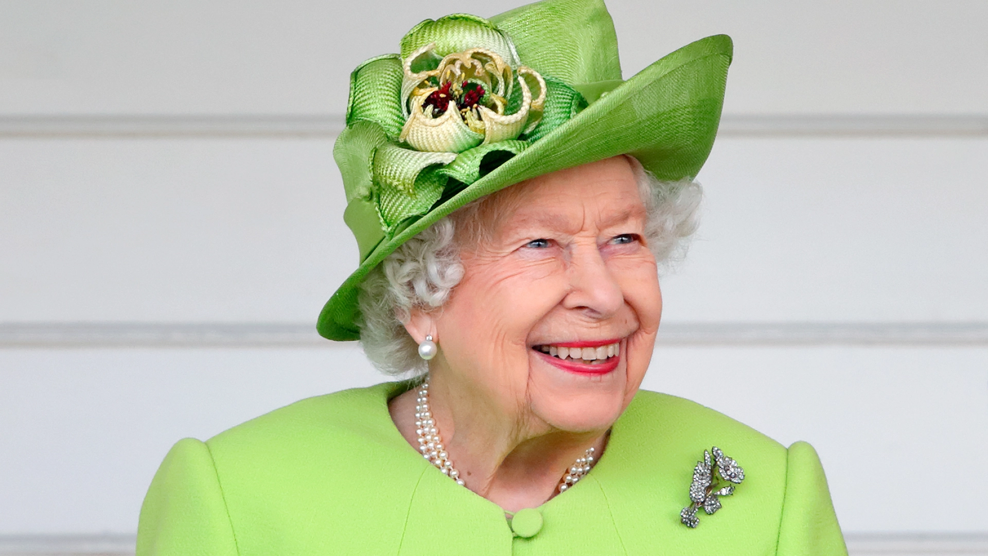Queen Elizabeth II wearing a Stewart Parvin design.
