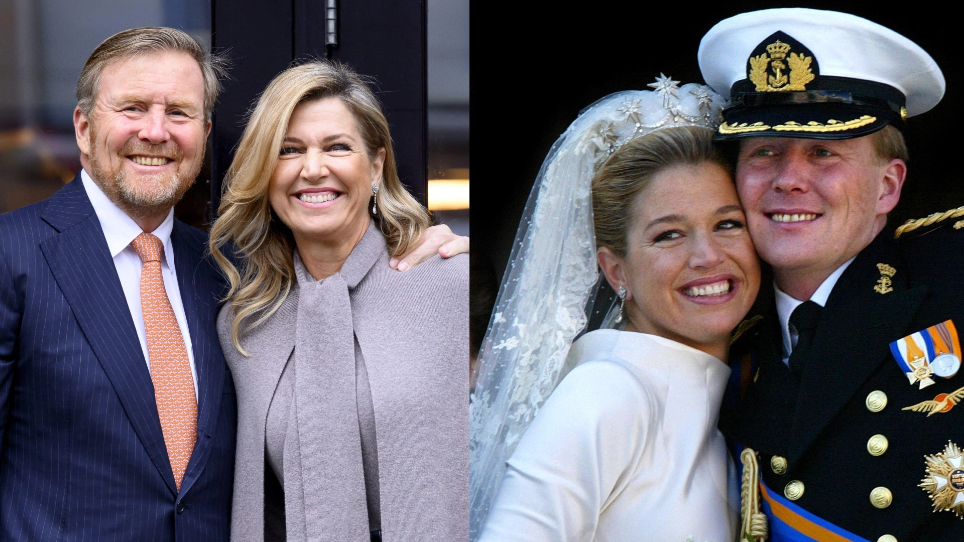 Máxima and Willem-Alexander are seen on their wedding day in 2002.