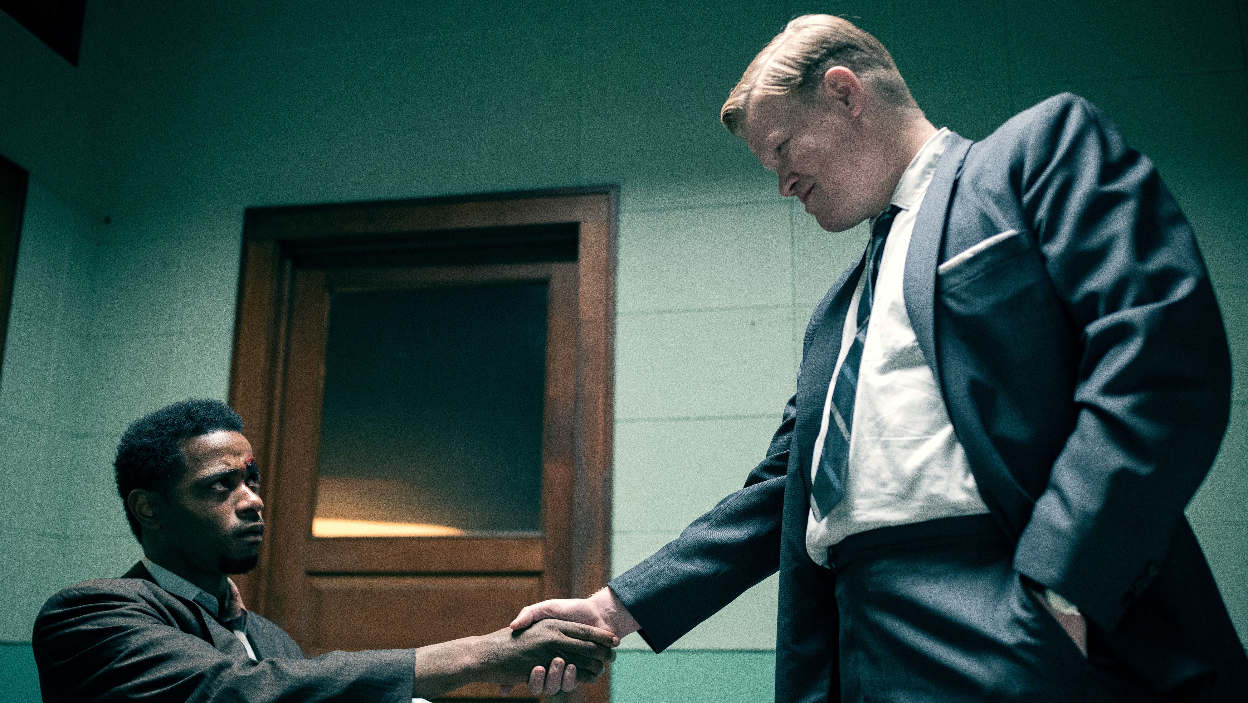 LaKeith Stanfield as William O’Neal and Jesse Plemons as Agent Roy Mitchell in Judas and the Black Messiah.