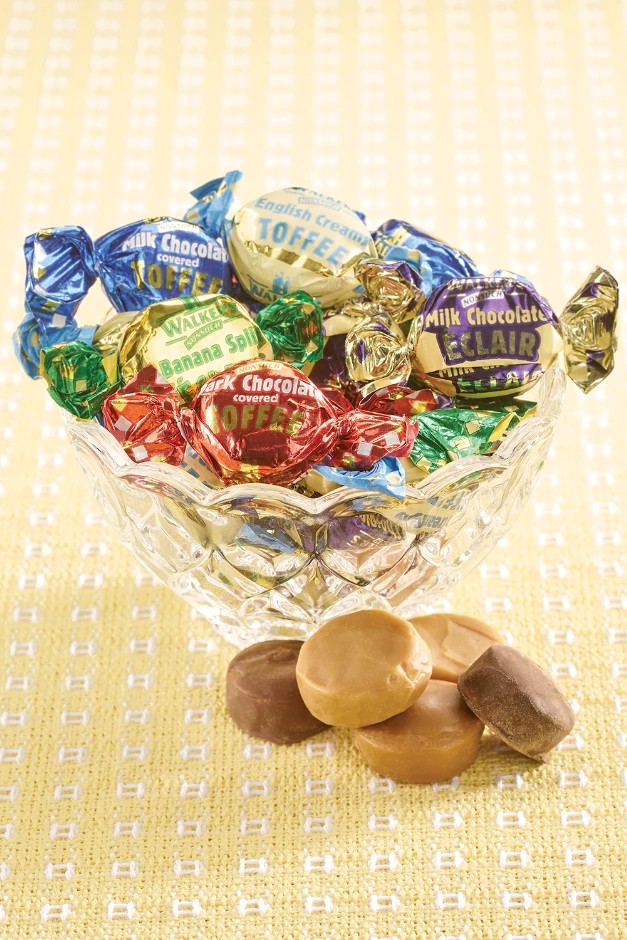 To recreate that season 1 Peneloise-lounging-in-the-drawing-room-eating-sweets moment, snap up a vintage English toffee tin and fill it with some major butter-y goodness.
