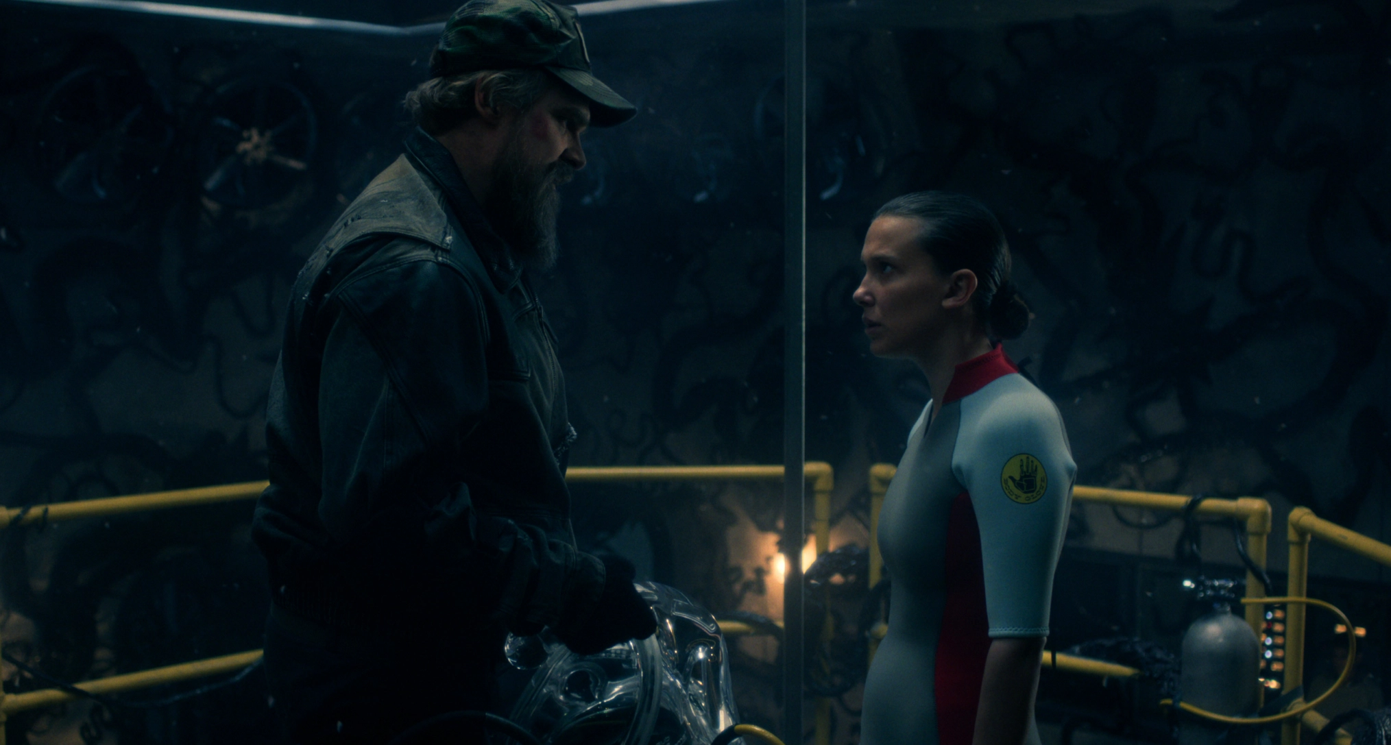 In the Upside Down, Hopper (David Harbour), Eleven, Kali, and Murray (Brett Gelman) head to Hawkins Lab so Eleven can take one last dunk in the sensory deprivation tank. Once in the Void, she, Kali, and Max (Sadie Sink) jump into Vecna/Henry Creel’s mind to find his memory of the Creel house, which is where he’s holding the 12 Hawkins kids he kidnapped to use as “vessels.”