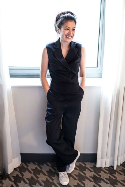 Thus, the jumpsuit has seen me through fashion events, charity benefits, awards ceremonies, holiday parties, fancy and not-so-fancy dinners, and power lunches. It can be dressed up or down. (Check out Sandra Oh pairing a black jumpsuit with sneakers post-Golden Globes hosting last month.) I don’t have to sit like a royal worried about modesty, and—unlike some of the dresses I own—I’m free to eat whatever I want. I feel unrestricted and relaxed, and I wouldn’t want to go to a party feeling any other way.