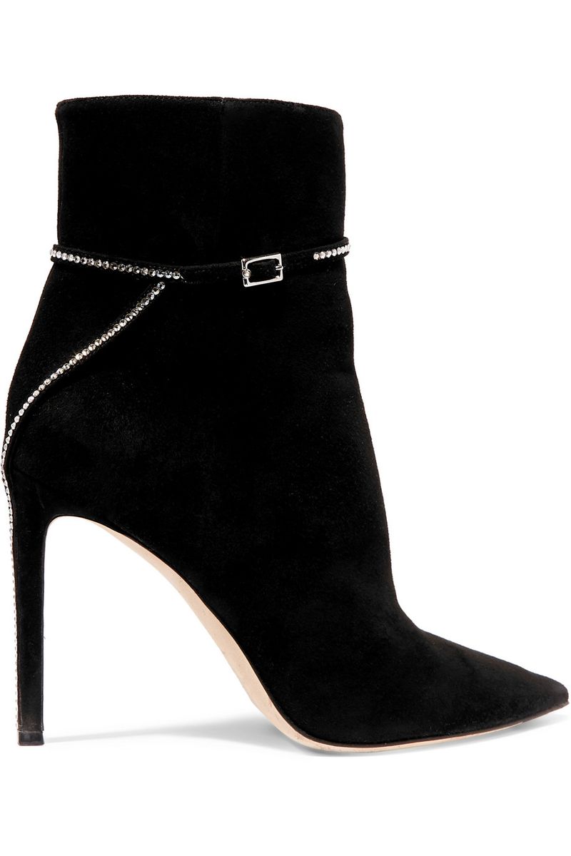 The collection, which consists of 10 shoes and three evening handbags, all feature distinct designs. There's a touch of crystal on the straps or decorative wispy feathers at the heel, something to always draw the eyes downwards. The handbags mirror the red-carpet-worthy shoes and come in versatile black embellished with crystals and bows. The pieces don't have to be reserved strictly for the red carpet though: You can easily wear any of the items to a charity gala, on your birthday, or to that upcoming fall/winter wedding...or just for a glass of wine in your own apartment. (Don't forget to scoop up a Net-a-Porter promo code before you hit checkout.)