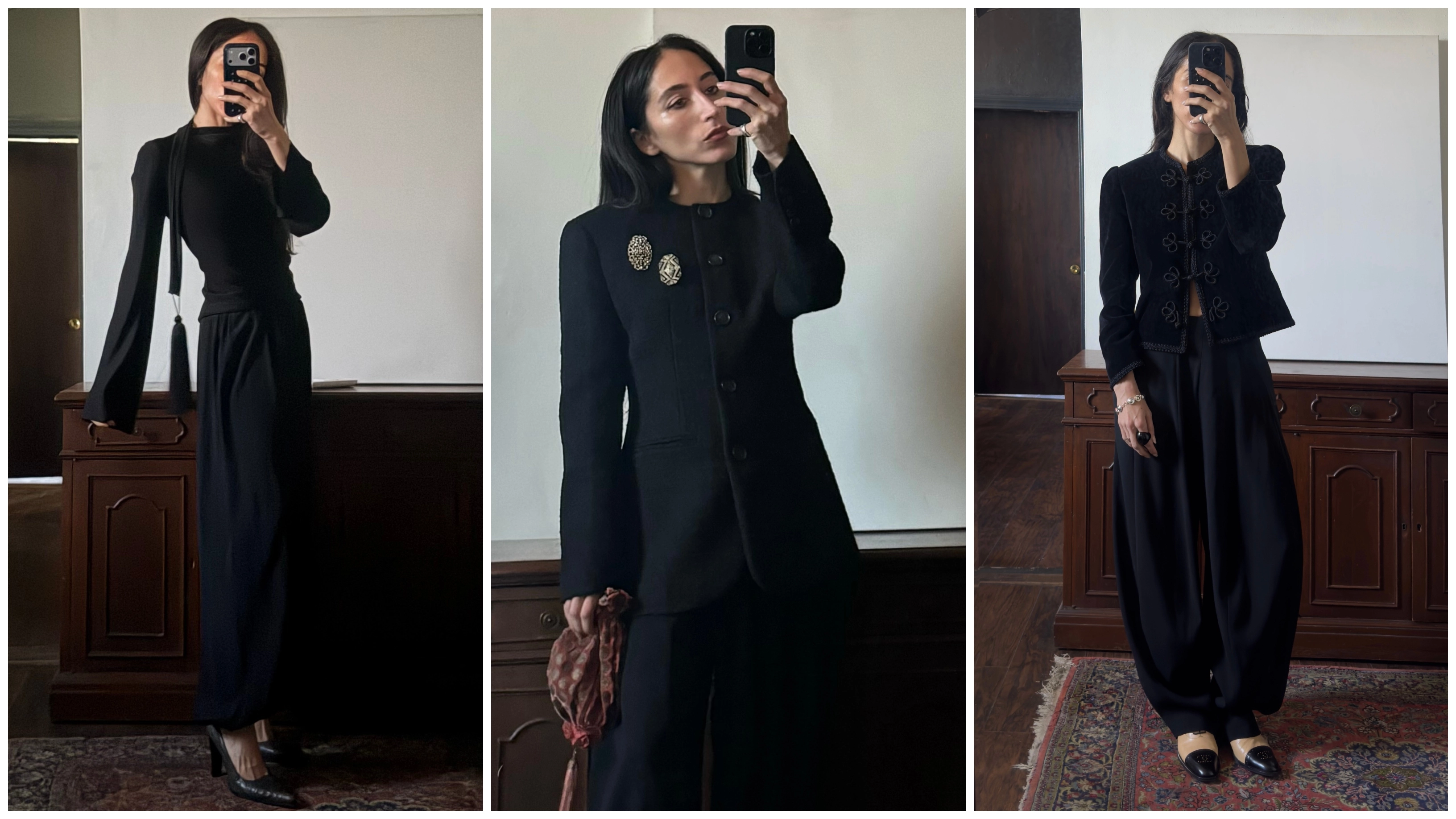 Aside from taking cues from the runway, I’ve also drawn inspiration from my family. Pictured below are four generations of women wearing all-black looks enhanced with elegant accessories.