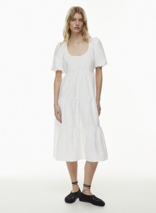 The next time you don't know what to wear when it's sweltering hot, go with this pretty white dress. It's made from 100 percent cotton poplin so you'll stay cool all day long.