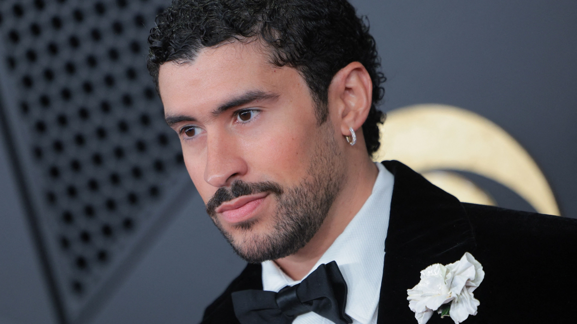 It's a big night for Benito: He's nominated in six categories for Debí Tirar Más Fotos—Record of the Year, Album of the Year, Song of the Year, Best Música Urbana Album, Best Música Urbana Album, Best Global Music Performance, and Best Album Cover. He arrived to the Grammys red carpet in an elegant black velvet tuxedo, with a sharp nip at the waist, over a white shirt and black bow-tie, styled by Storm Pablo.