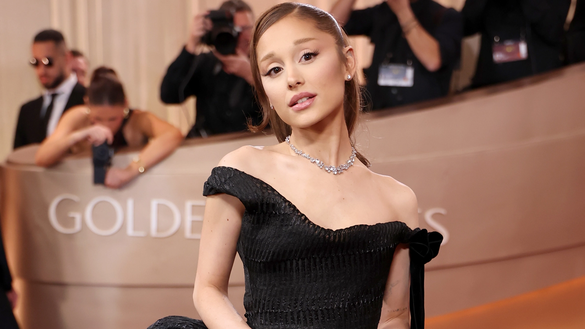 Ariana Grande Takes Her Final Anti-Glinda Bow in a Black 2026 Golden Globes Ballgown