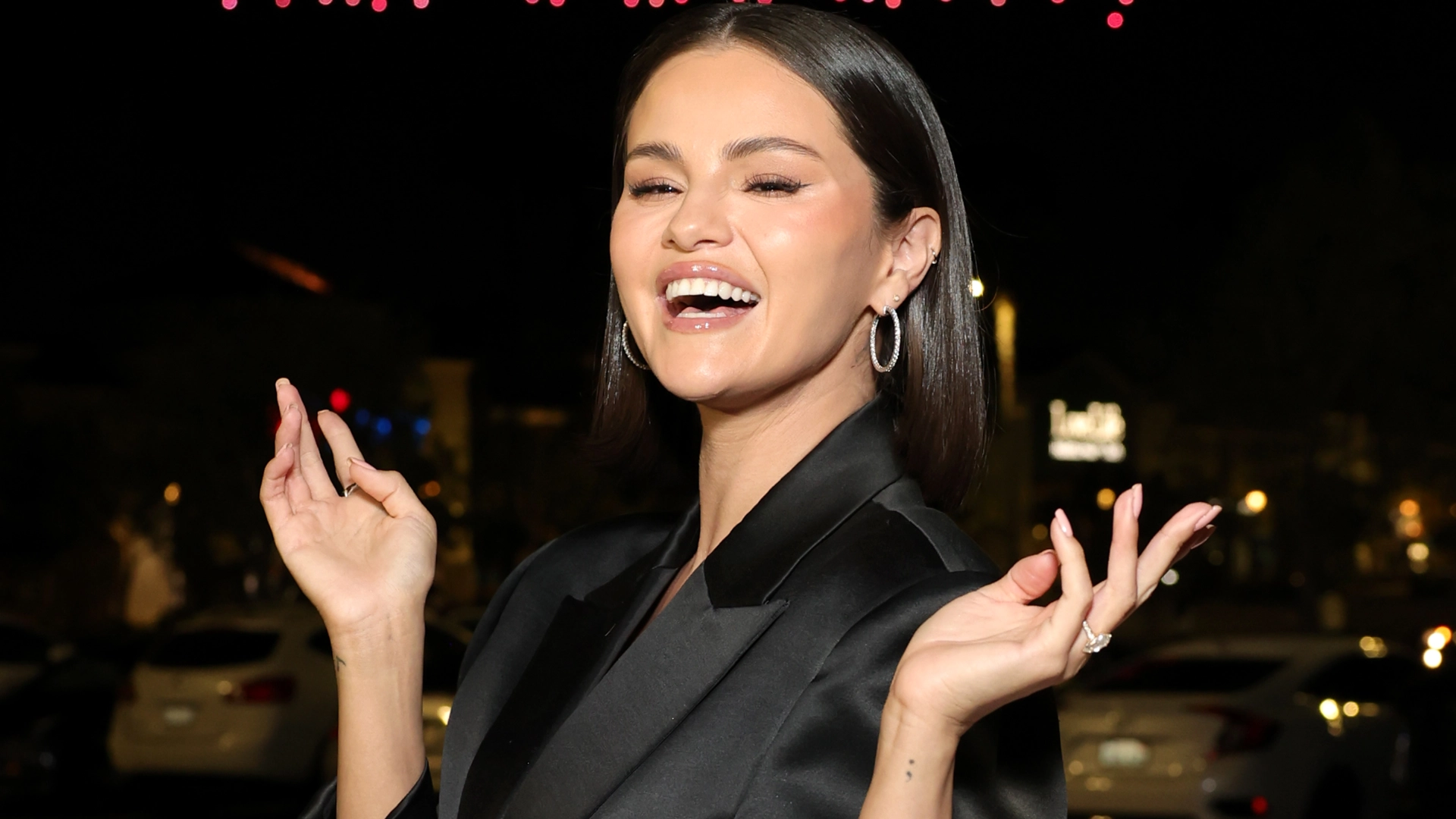 In celebrity style circles, Selena Gomez's black jacket collection is the stuff of legends. No two Penny Lane coats or leather jackets are identical, leaving lots of space in her closet—especially the workwear section—for new additions. At this point, they're as synonymous with Rare Beauty's aesthetic as Gomez herself. For proof, see her a crisp black blazer at the brand's April 1 photoshoot, which instantly elevated her wide-leg jeans and Rare Beauty eye patches.