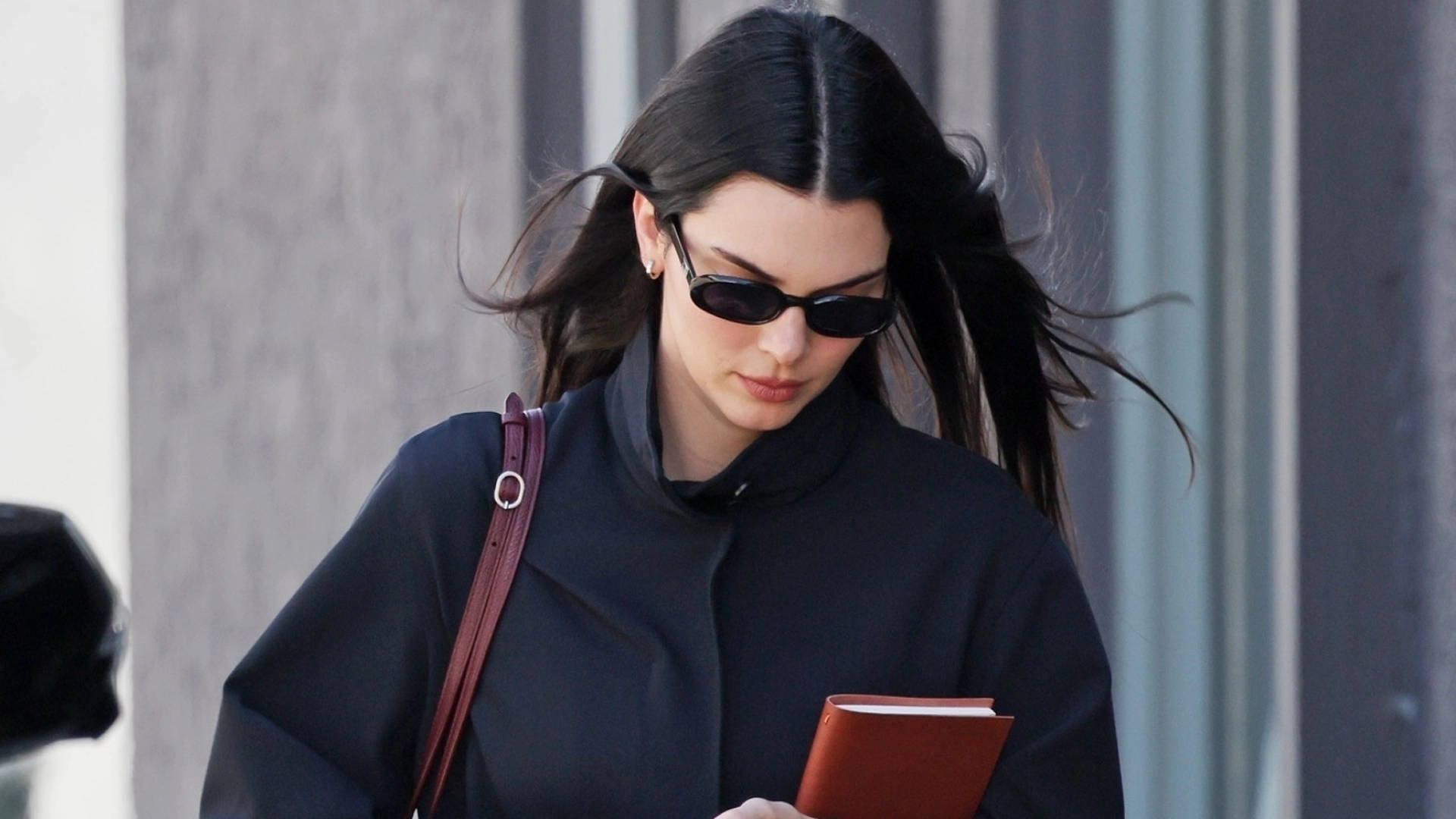 Jenner's jacket doubled as the navy backdrop behind her new Matthieu Blazy-era Chanel Maxi Flap Bag. Hailey Bieber and Kylie Jenner's black Chanel totes feature the same slouchy flap, pebbled leather, and monogrammed turn-lock. Kendall's $9,300 tote, on the other hand, was burgundy from the double shoulder straps to the inside zipper pocket. It even matched her equally-warm-toned, leather-bound notebook.
