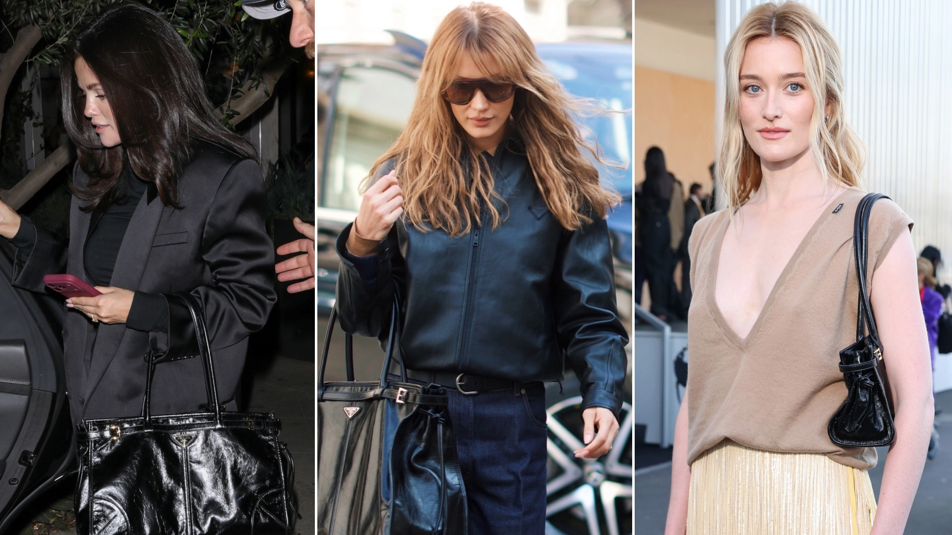 By the following February, Selena Gomez had the same Prada bag on her arm. The only difference? Yellow gold hardware bookended its patent leather. Beyond Gomez's known soft spot for Miuccia Prada's designs, it reinforced the east-west trend is still active within her black bag rotation. (The Osoi Boat Bag she carried last summer stretches just as far horizontally.)