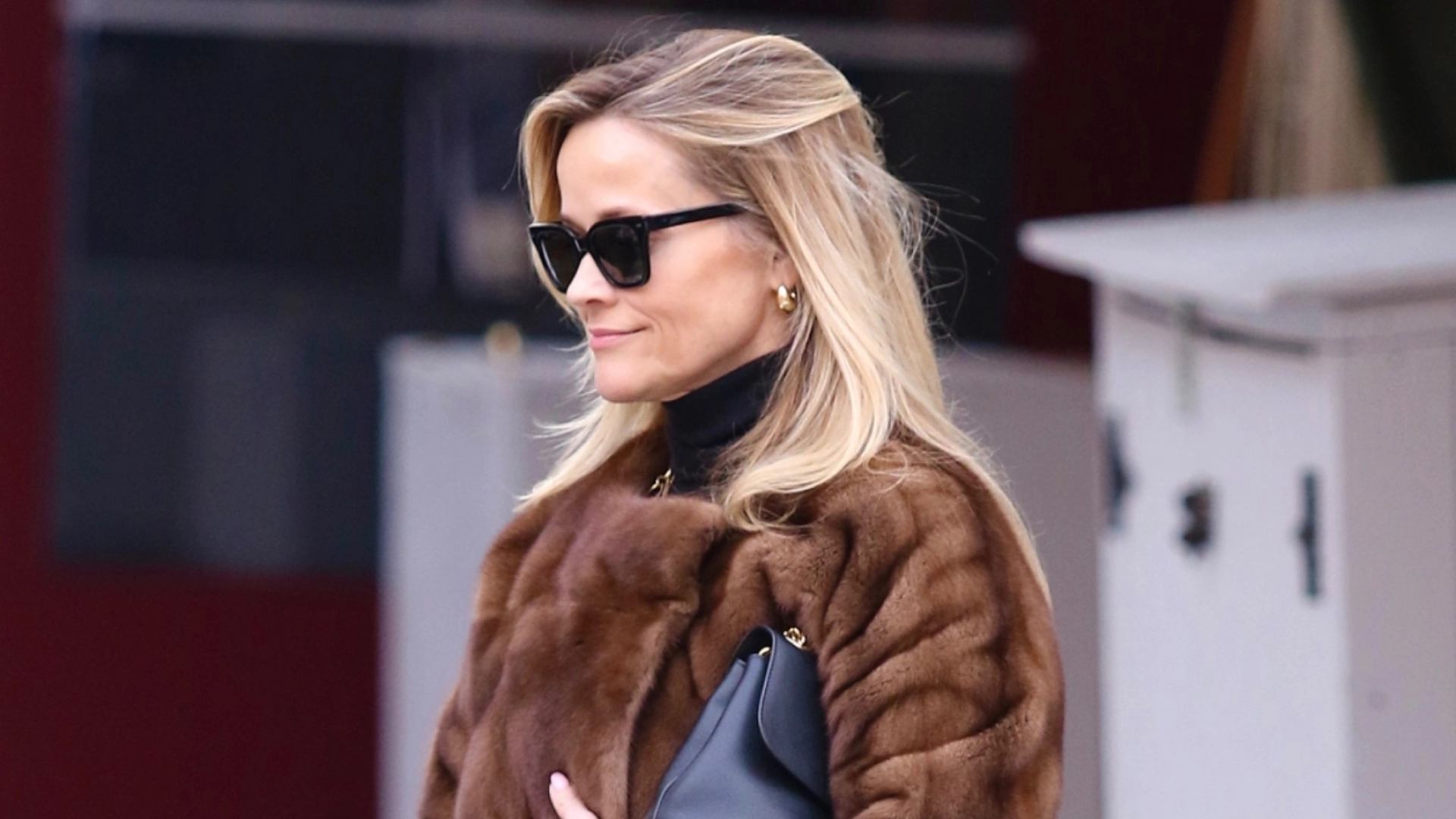 Reese Witherspoon Braves the Snow in a Luxe Fur Coat, Chunky Black Boots, and Bootcut Pants