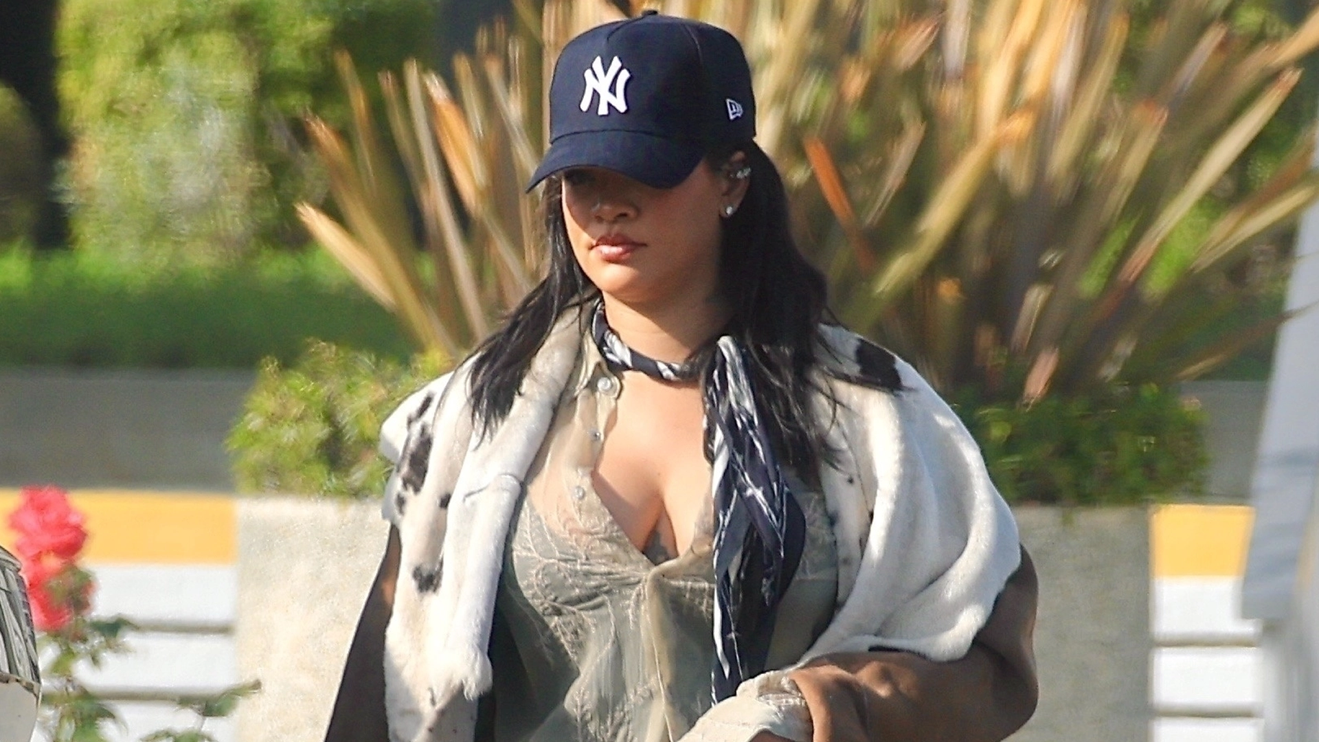 Right about now is when I'd write a raving review of Rihanna's latest vintage purse. An impressive four-figure find is almost always dangling from her arm. Not this time, though. What the "Diamonds" singer lacked in a handbag she made up for with cool-girl accessories, beginning with a New York Yankees baseball cap. It matched the patterned scarf tied around her neck.