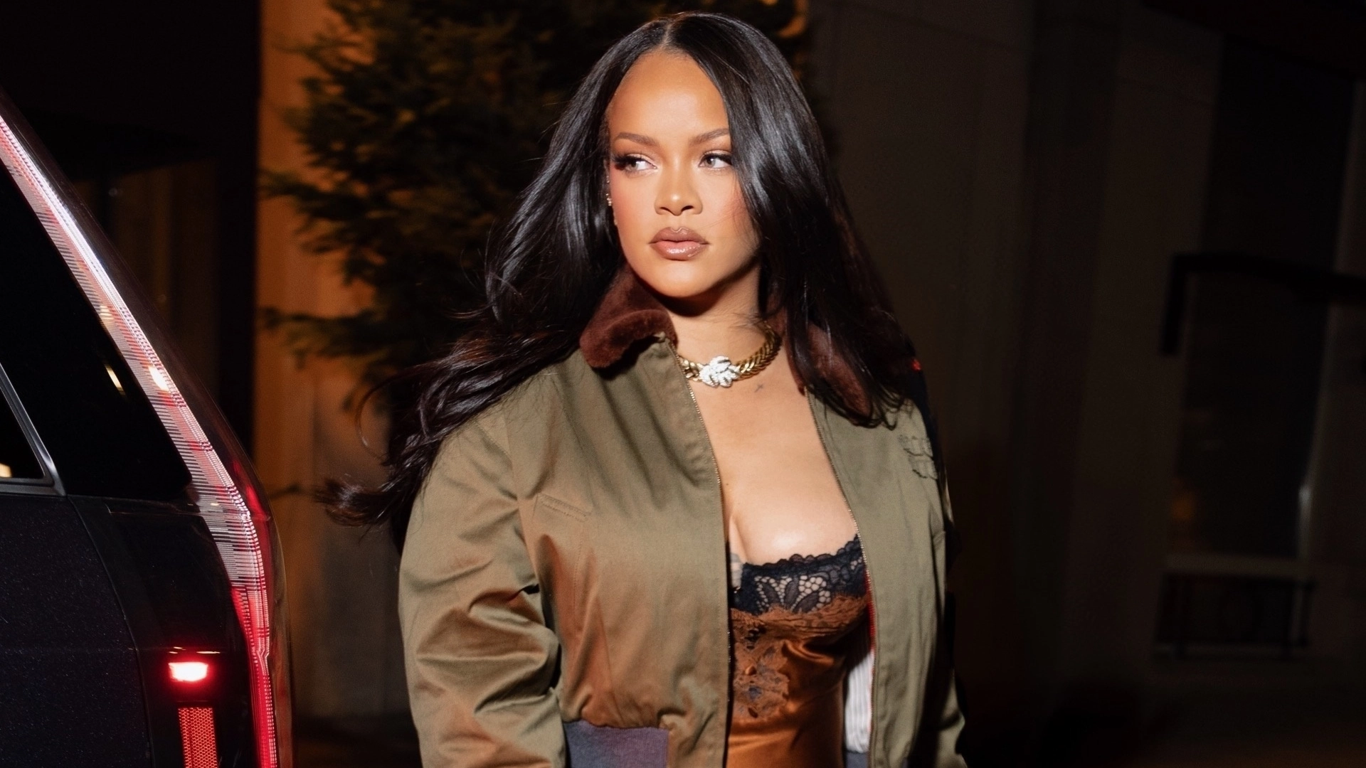 The street style star took a trip down fashion memory lane at the New York City release party of A$AP Rocky's fourth studio album, Don't Be Dumb. She stole the show in a rust orange, Saint Laurent satin slip with a lace-trimmed neckline that created a peekaboo bra effect, which felt reminiscent of her decade-old outfits. (See: her circa-2016 Ovo Fest look, in all its thigh-high boot glory.) Rihanna winterized her little orange dress with a cropped, army green bomber jacket from Miu Miu. (Zoom in to see its brown, fur-lined collar beneath her silky smooth bombshell waves.)