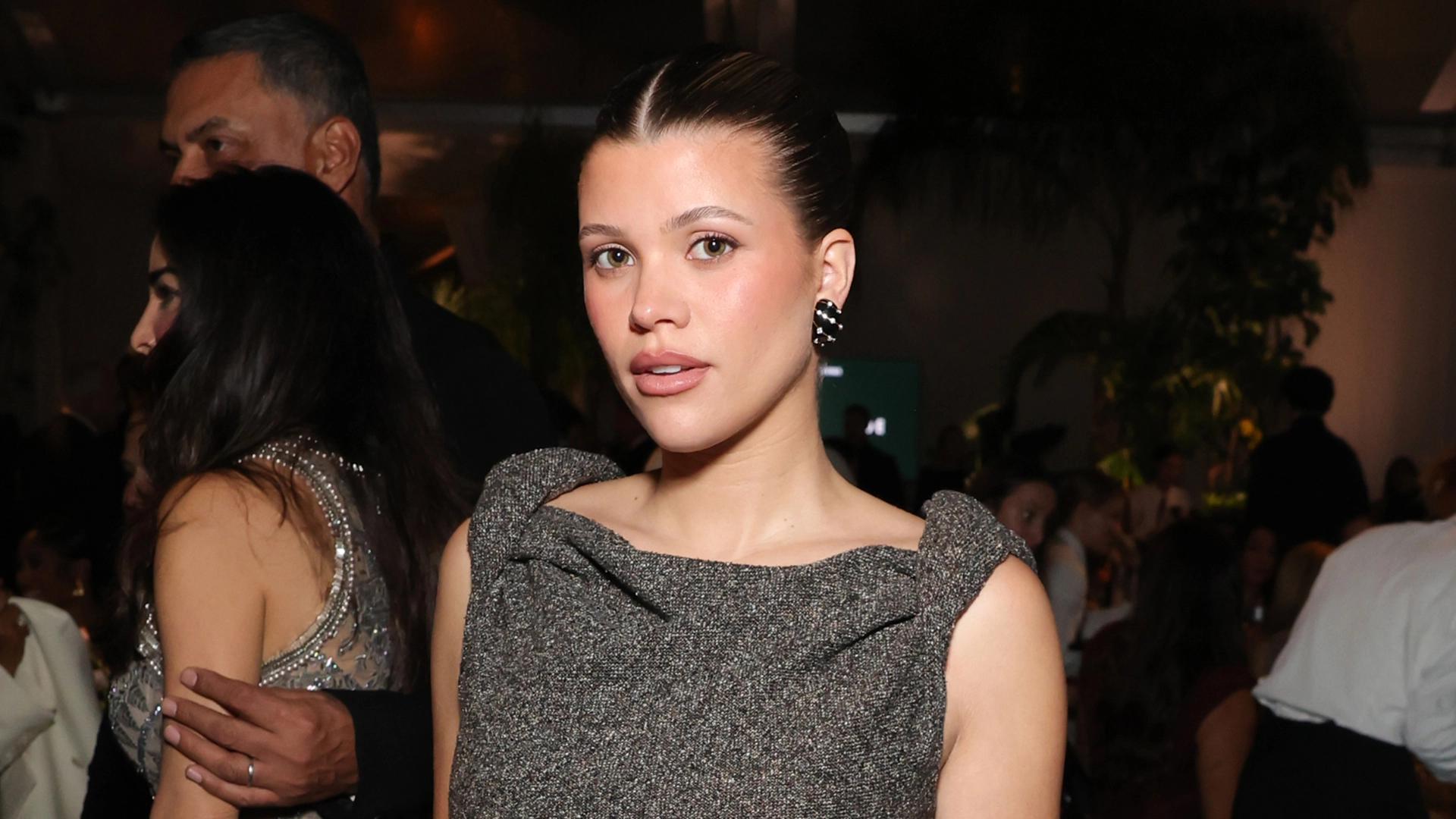 Sofia Richie Grainge pairs a The Row dress with Tiffany & Co. earrings.