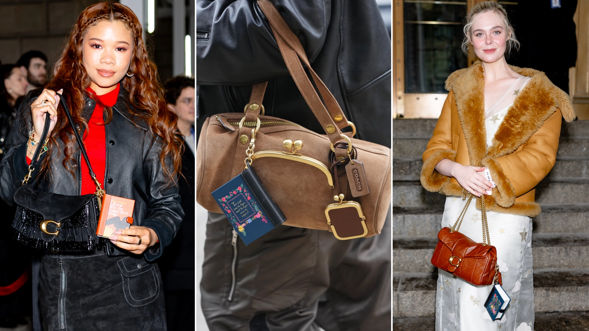 On paper, hanging a book from your bag might feel like the fashion girl equivalent to the performative male trend; specifically, stuffing a paperback in a visible jeans pocket. Instead, Coach's charms are the latest chapter in the fashion industry-wide literary takeover. It didn't all start in 2026: Parisian label Olympia Le-Tan has offered hand-embroidered book clutches since 2009. (Elle Fanning is the proud owner of one.) But as recently as last week, New York Fashion Week fixtures incorporated literature into the show notes, including Rachel Scott with reading lists and Joseph Altuzarra with books as post-show souvenirs.