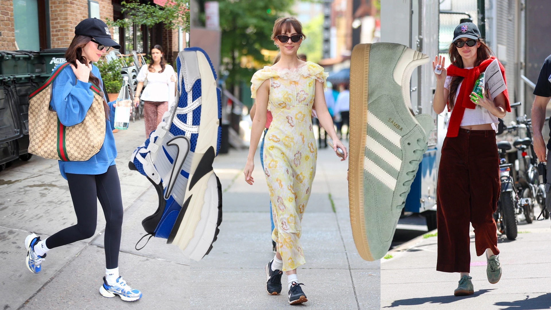 Jennifer Lawrence has been my sneaker collection muse for years. But on set for her matchmaker dramedy last summer, Johnson's equally-enviable rotation was the highlight of each Materialists outfit I saw. In between takes, the leading lady strolled through New York (and onto my Pinterest board) in various It-trainers, including the famed Adidas Sambas sneakers. A few scenes later, the sneakers du jour were replaced by a chunkier counterpart: the Nike Cortez, complete with wide toes and crease-resistant uppers. Her matchmaker character, Lucy, even gave Converse Chuck Taylors a go alongside a floral Reformation dress.