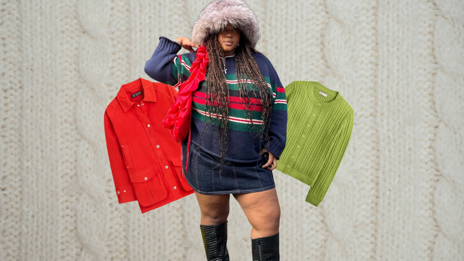 I teamed up with friend and stylist Niall Brandon to make the preppy pick fit more into my style. In the end, I paired it with a dark-wash denim mini skirt, a pair of croc-embossed knee-high boots, and a furry hat to make it more my vibe.
