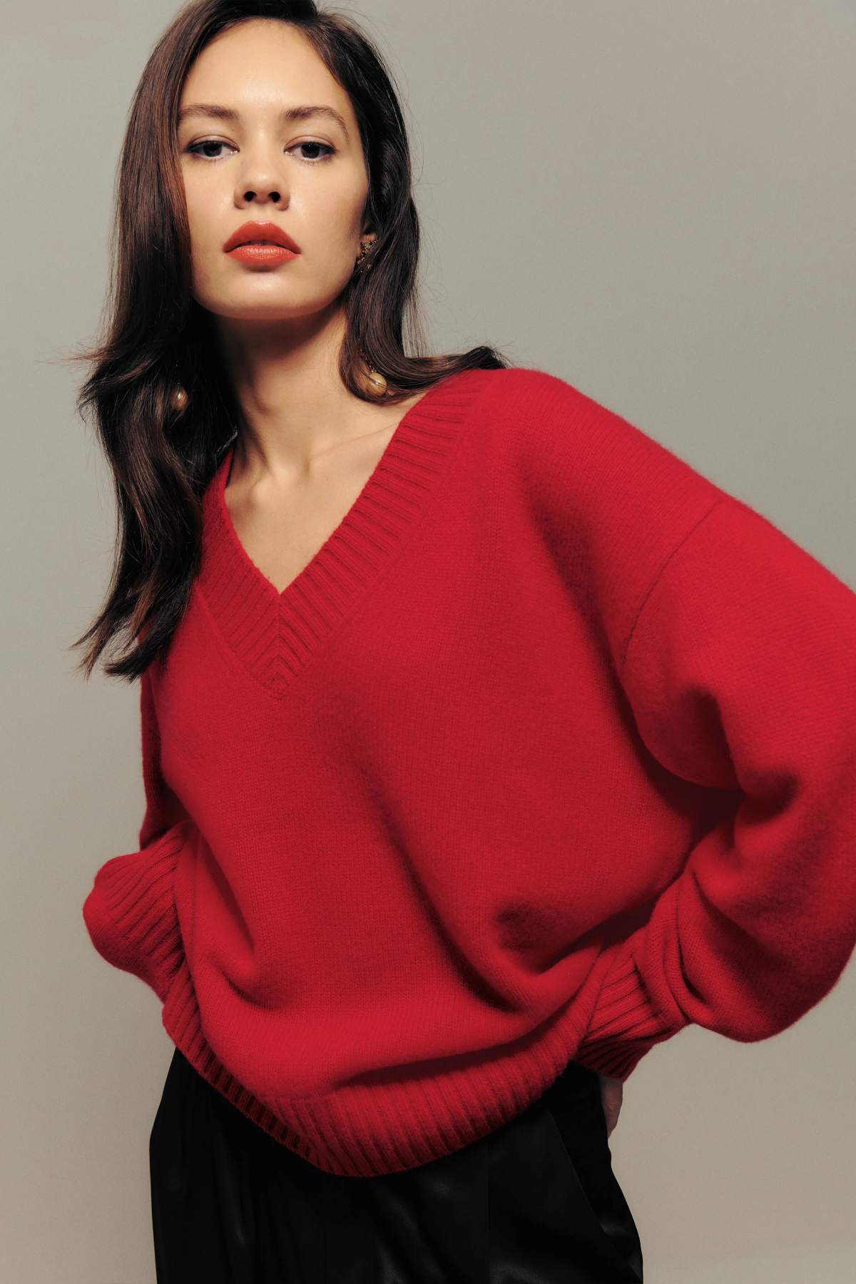 Reformation Jadey Cashmere Oversized V-Neck Sweater