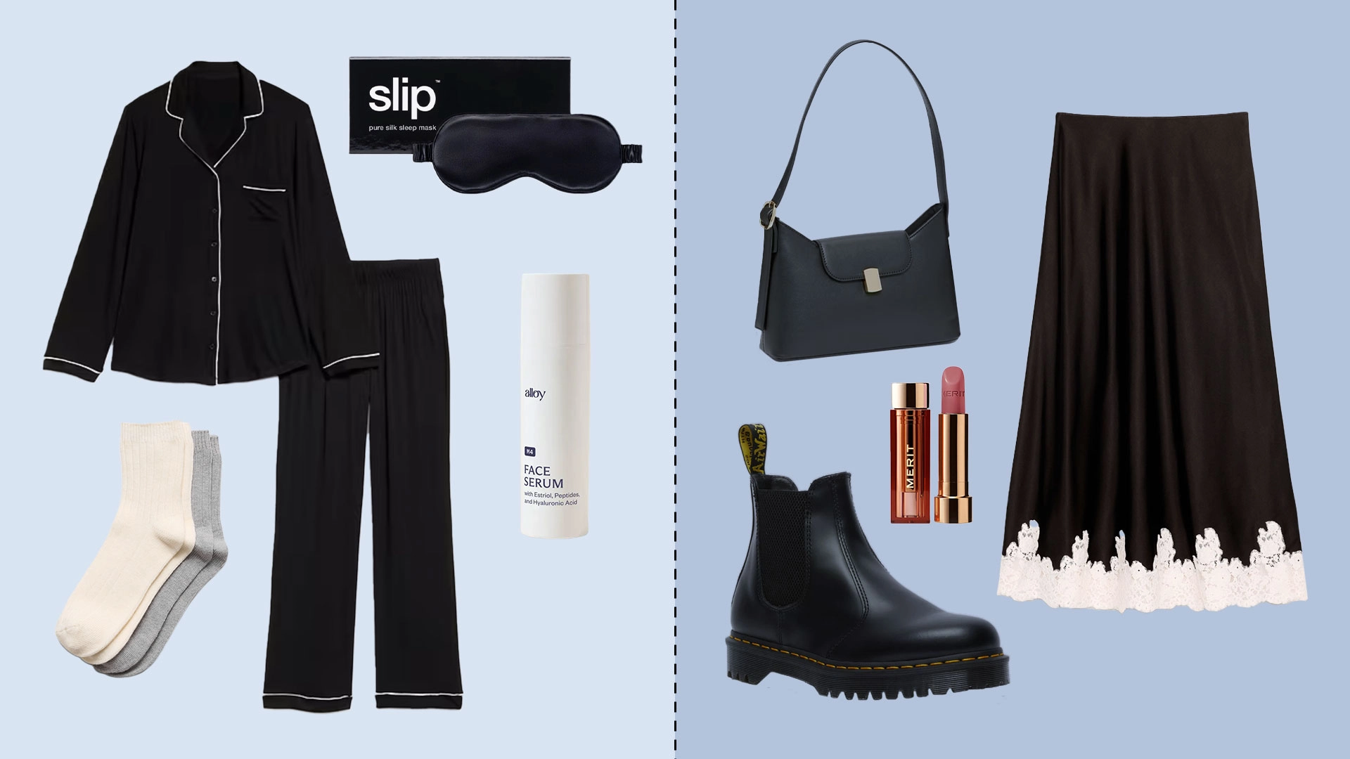 Important question: On a fall Friday night, are you team Staying In or team Going Out? If you ask me, you should be prepared for either. That means having cozy pajamas and a candle on deck and a night-out look prepared just in case a great dinner reservation opens up. Below, I rounded up my favorite picks for both scenarios. I included my favorite robe and skincare essentials along with a chic leather jacket, boots, and a long-lasting lip stain for a brisk night out on the town. Scroll on to shop my indecisive roundup.