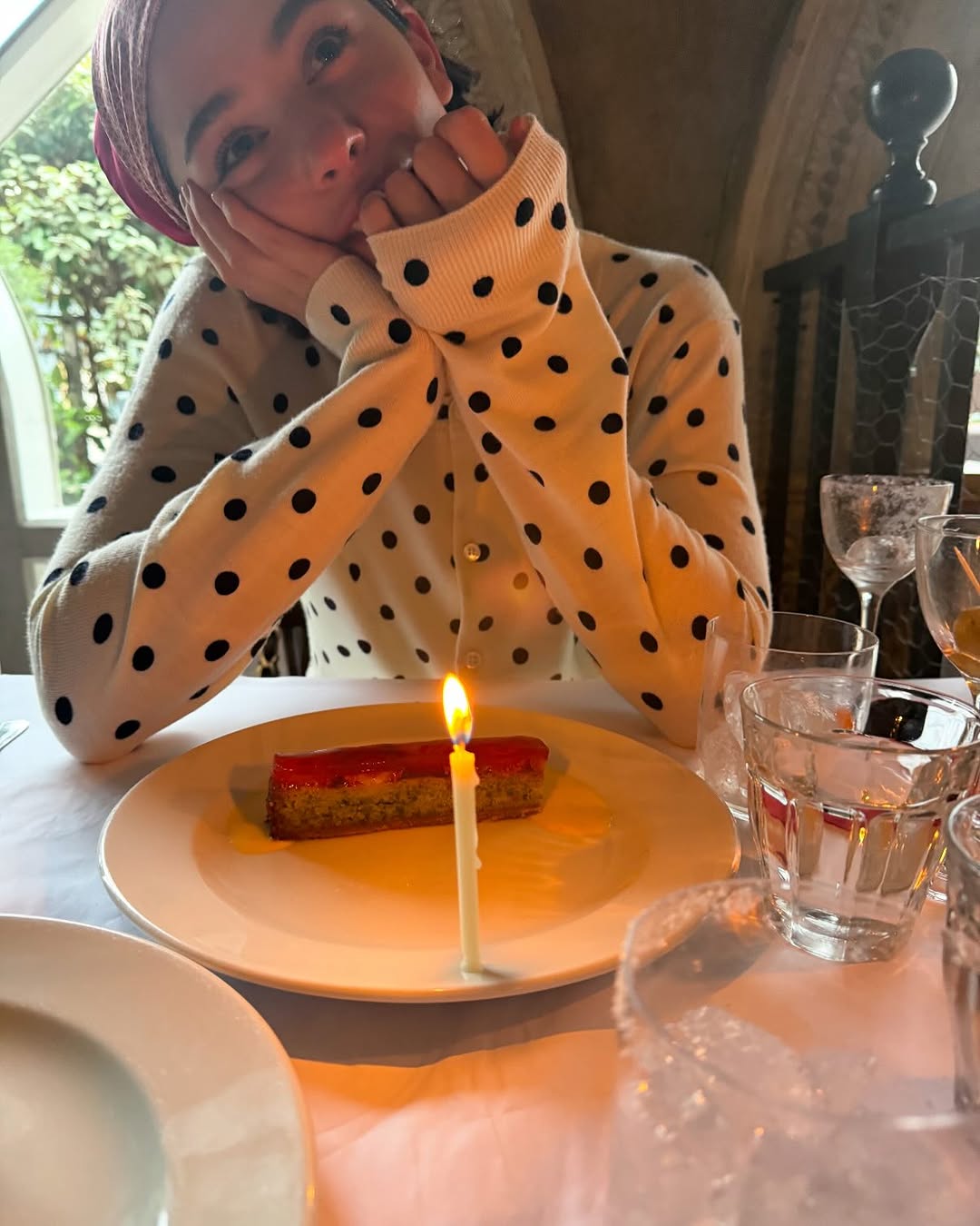 Gracie Abrams styles a Parisian polka-dot cardigan in Cannes, France.