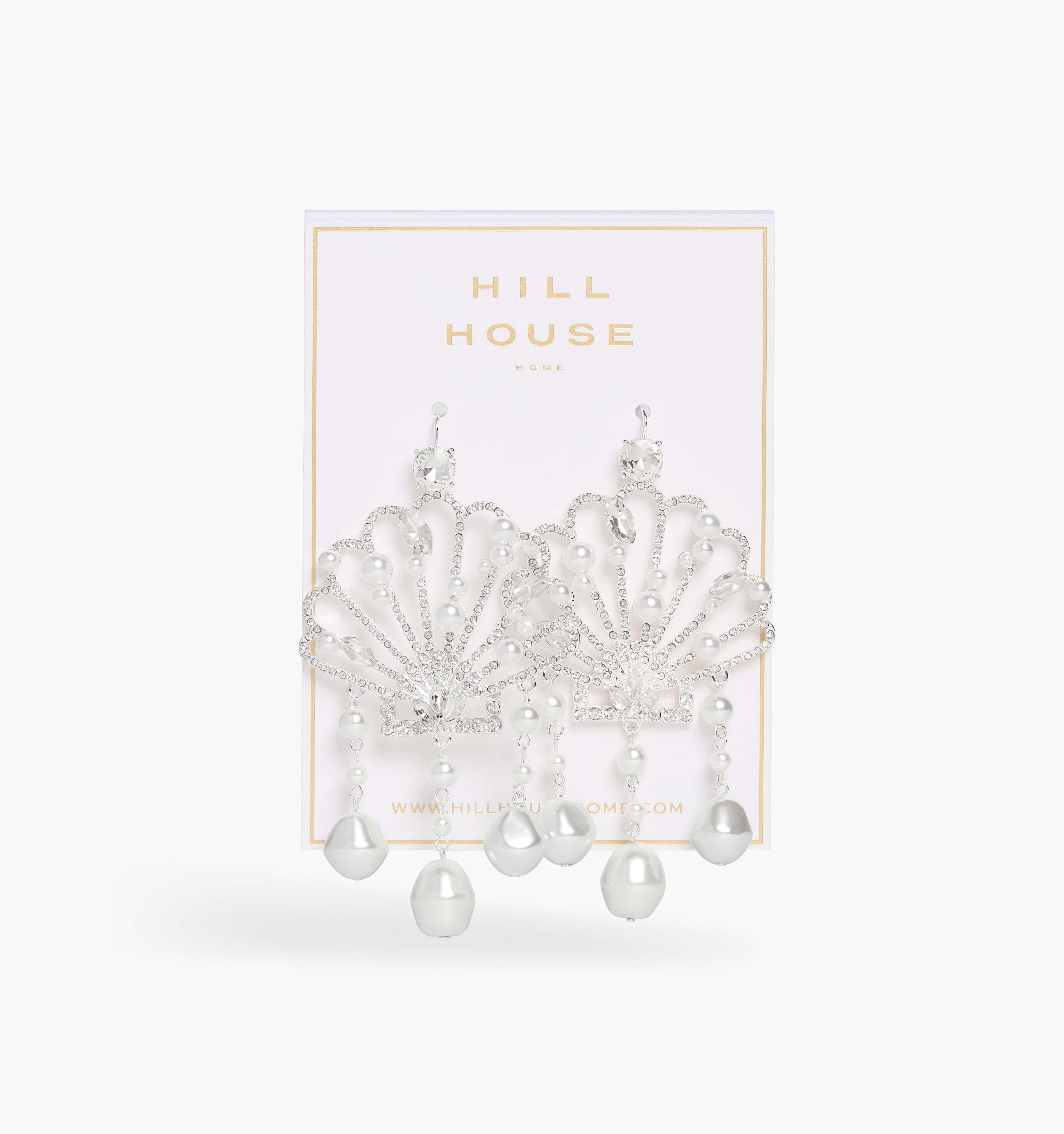 If you're wondering what to pair with your new assortment of Hill House Home footwear, consider one of the brand's new statement-making jewelry pieces. Choose from glass stone heart drops, crystals and faux pearl chandeliers, oversized seashell earrings— possibly a sparkly nod to Diamond's childhood summers in Nantucket— and vintage ribbon chokers, best worn layered.