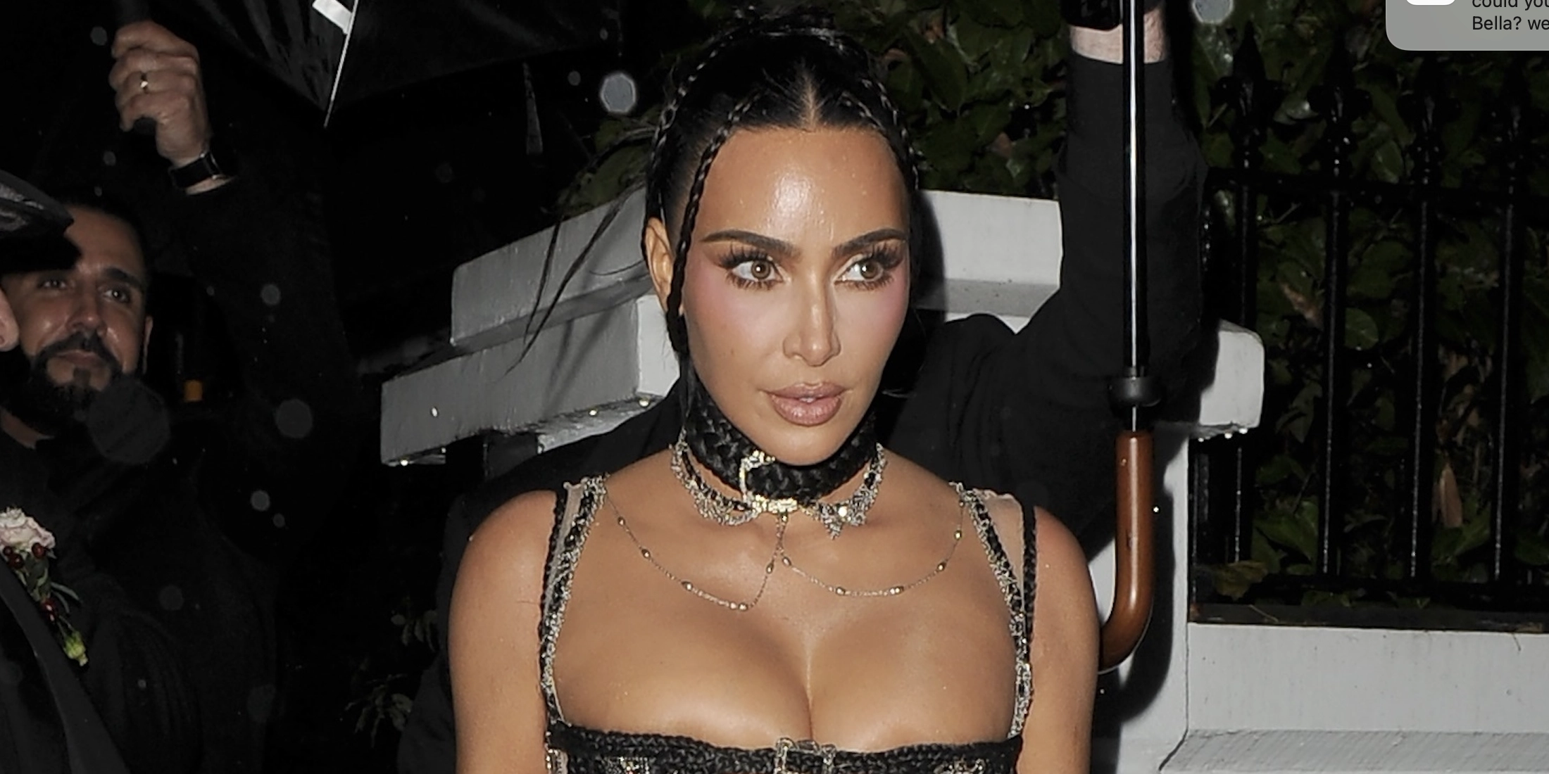 Kim Kardashian Trades Her SKIMS Bush Thong for a Micro Bra Made Out of Braided Hair