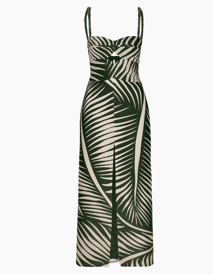 Markle and Prince Harry attended an exhibition sitting volleyball match hosted by the charity Nigeria: Unconquered on Saturday, May 11. The Duchess of Sussex tackled the Abuja, Nigeria, heat in a printed midi dress fit for vacation. Its silhouette featured all sorts of details that Markle can embrace without the constraints of royal protocol dress codes: keyhole cutouts at the bodice, spaghetti straps secured with tassels in the back, a bold, botanical print, and a high side-slit.