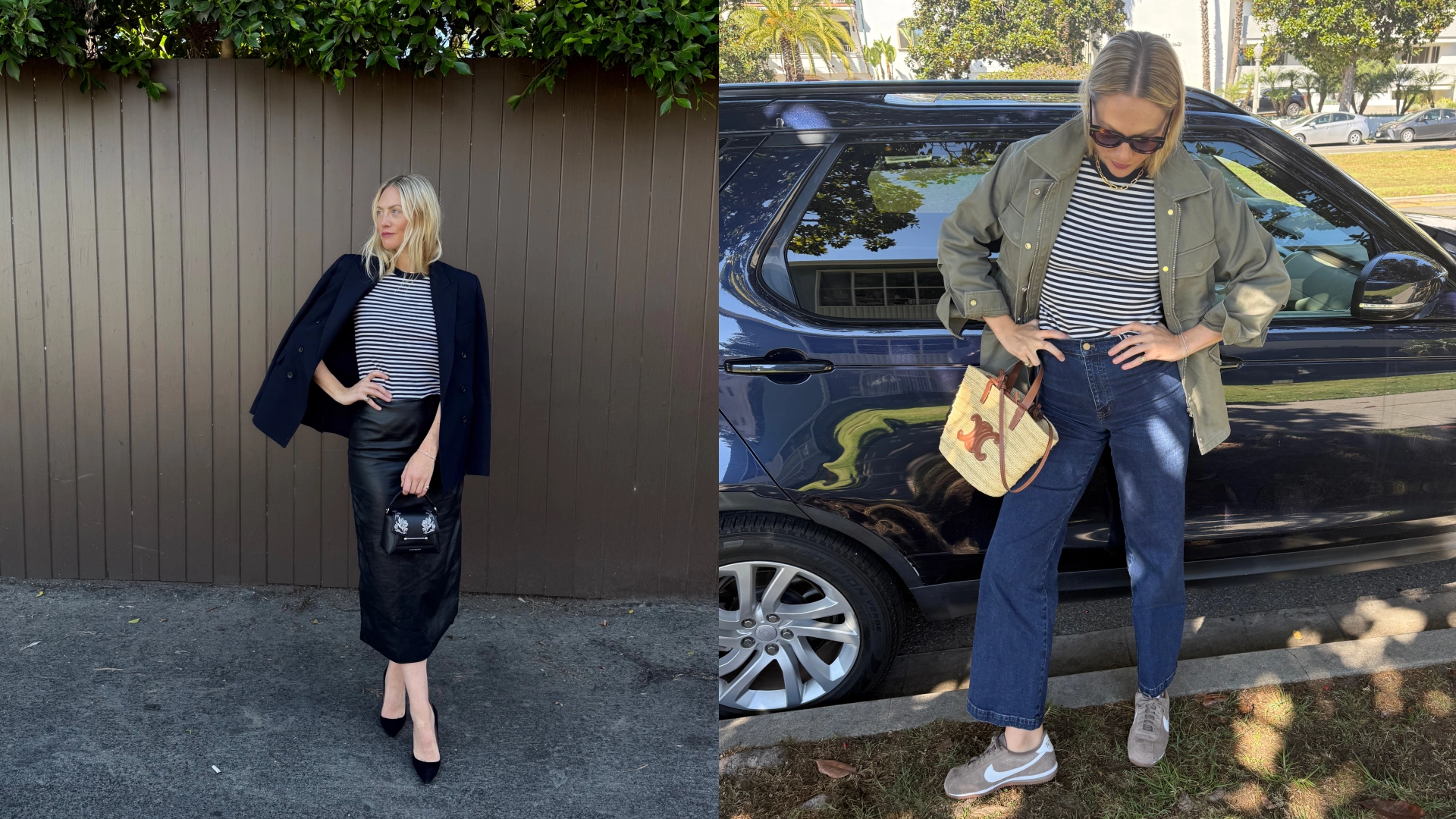 There’s a quiet confidence that comes with a great striped tee—it says, “I didn’t overthink this,” even though we both know you did. And that, perhaps, is the true magic of the stripe: timeless, a little French, a little effortless, and always just right. Here are two ways I style it.