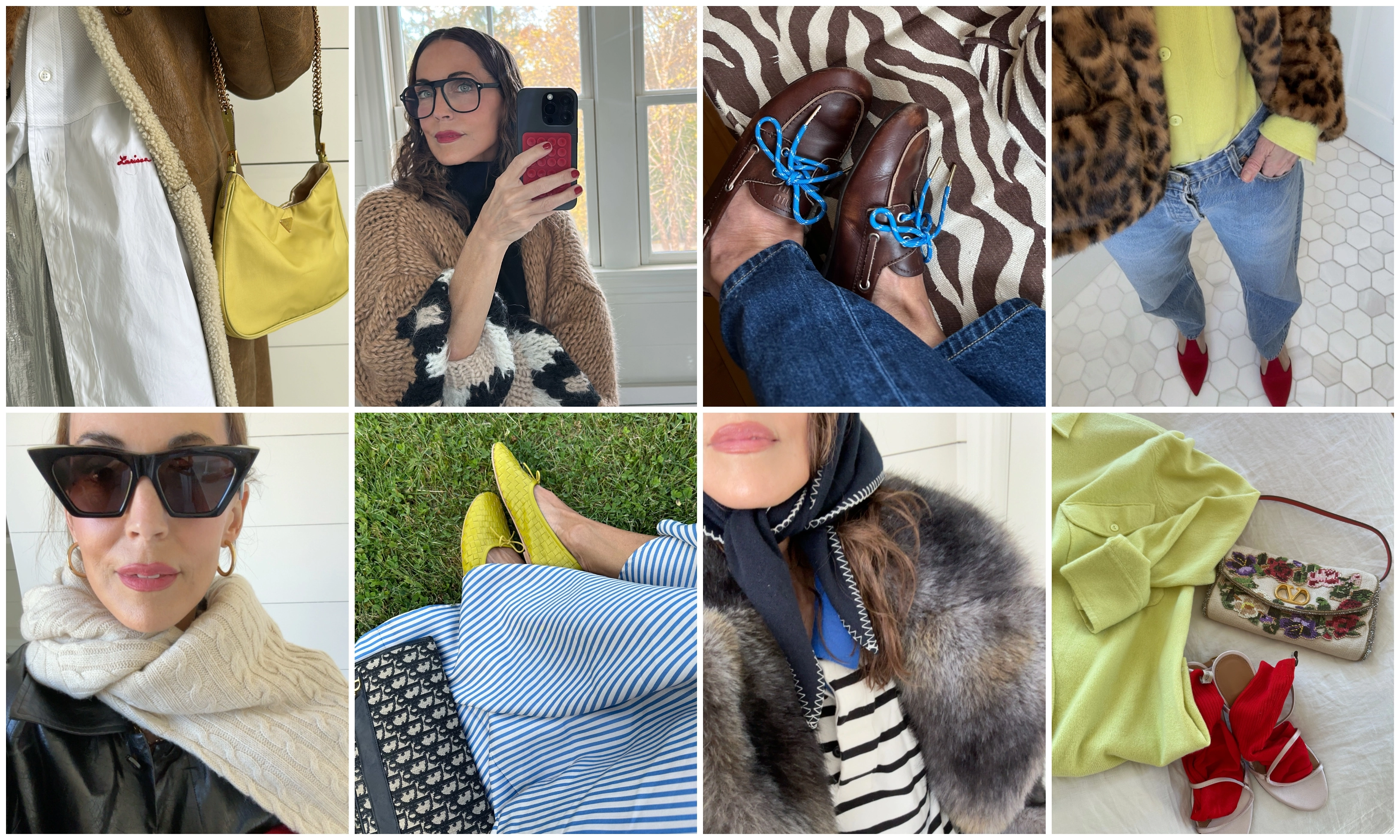 Then there are accessories, another powerful way to experiment with color. This could be chartreuse socks peeking out from cuffed trousers. I love a colored sock because sometimes they’re only noticed when you move or cross your legs. They’re the introverts of the wardrobe—subtle, almost shy, but capable of delivering just as much impact as the loudmouth extroverts like hot pink pants.