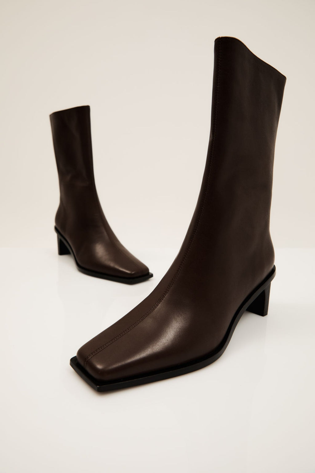 There's nothing worse than that pesky sliver of skin that shows between the top of your ankle boots and the bottom of your cropped jeans. This pair takes care of that problem thanks to a higher rise on the leg. The cool square toe is just a fashionable bonus.