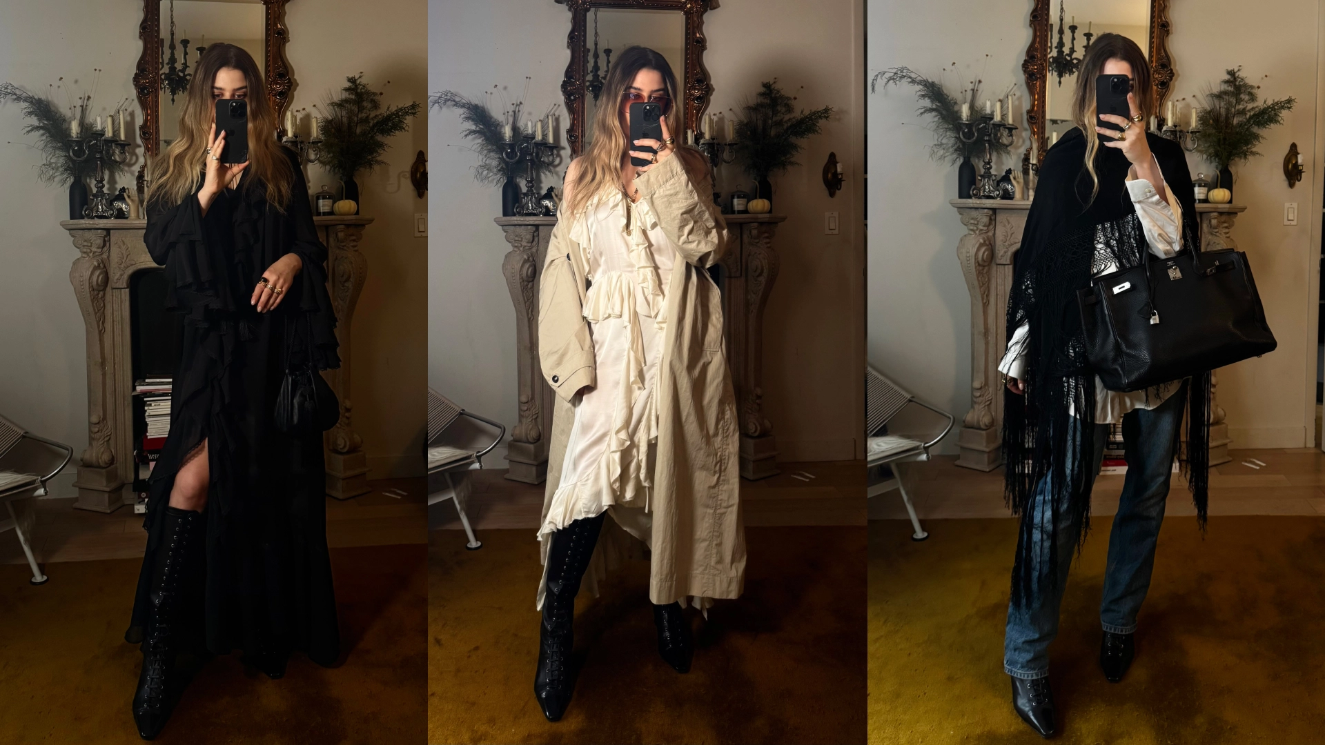 Clearly, I'm very inspired by Chemena Kamali’s Chloé. I styled this tiered, ruffled dress by Saint Art with an oversized trench coat to make it feel a bit less precious. I tucked one side of the hem into the top of the boot to give the look a bit more edge—and to show off the fantastic laces of them.